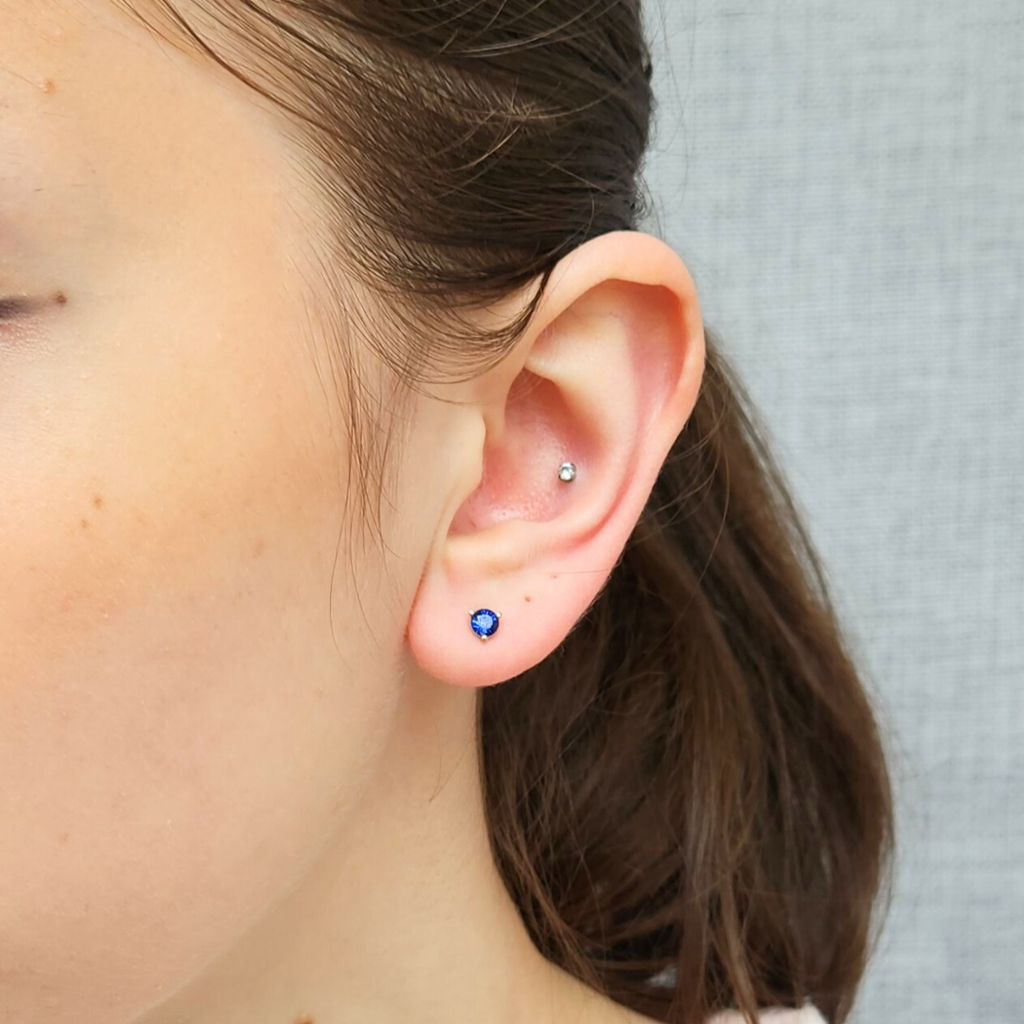 You can't go wrong with classic sapphire studs! These round brilliant cut blue sapphires are set in a beautiful 14k white gold martini setting with friction posts and backs. The sapphires are 4mm each, with a total weight of 0.59 carats.