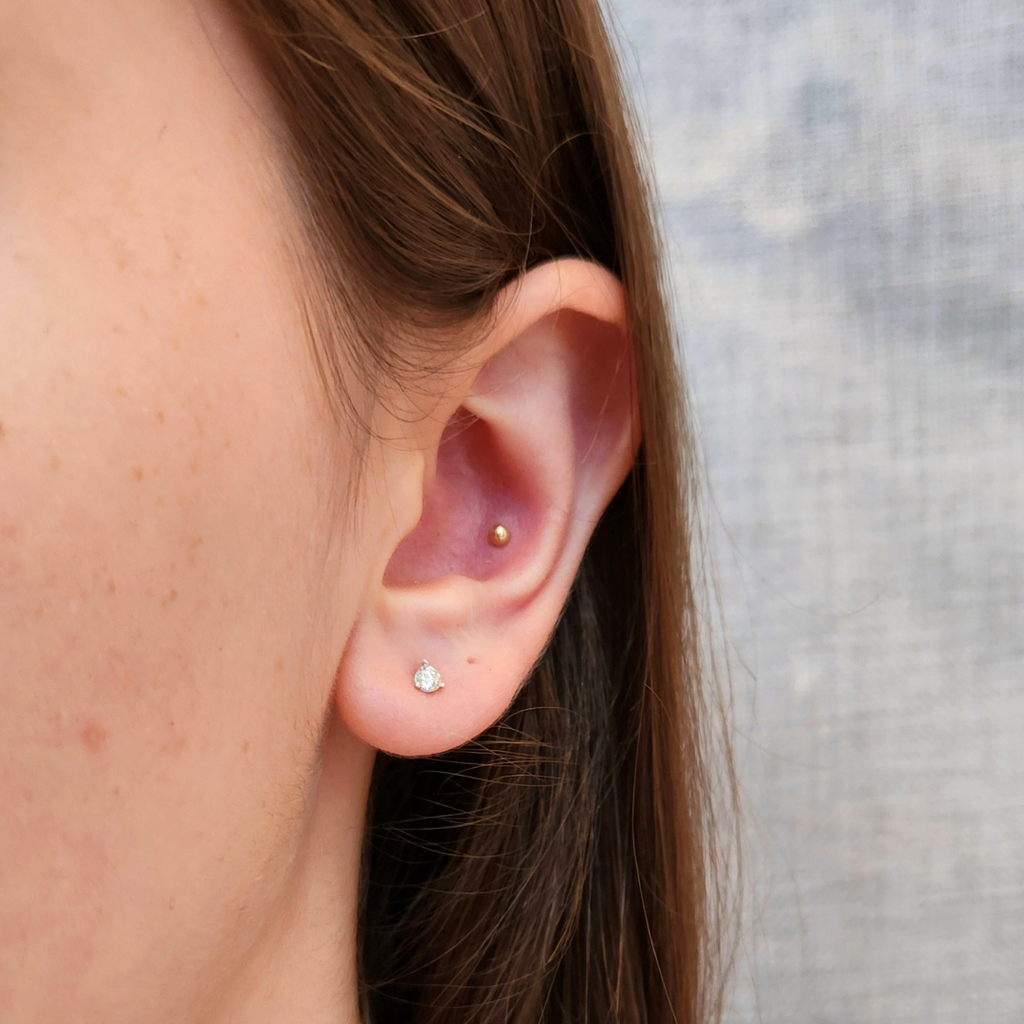 You can't go wrong with classic diamond studs! These round brilliant cut diamonds are set in a beautiful 14k white gold martini setting with friction posts and backs. The diamonds are 3.25mm each and are G/H color and VS clarity with a total weight of 0.24 carats.