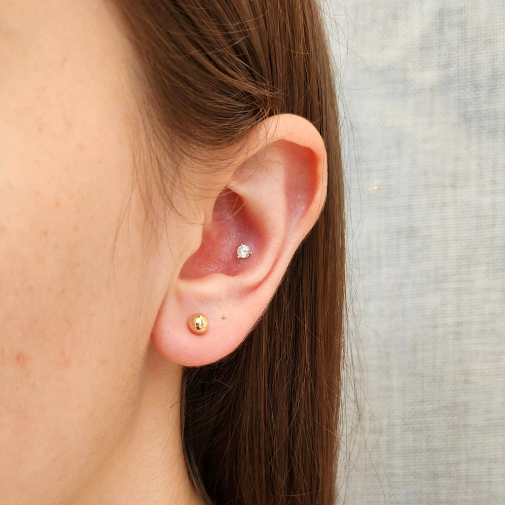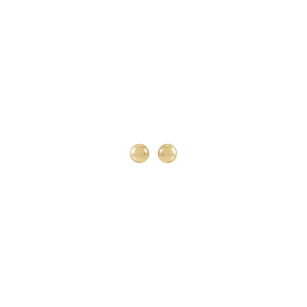 Classic gold ball studs for everyday wear. These 5mm hollow ball studs are made of 14k yellow gold on friction posts with backs.