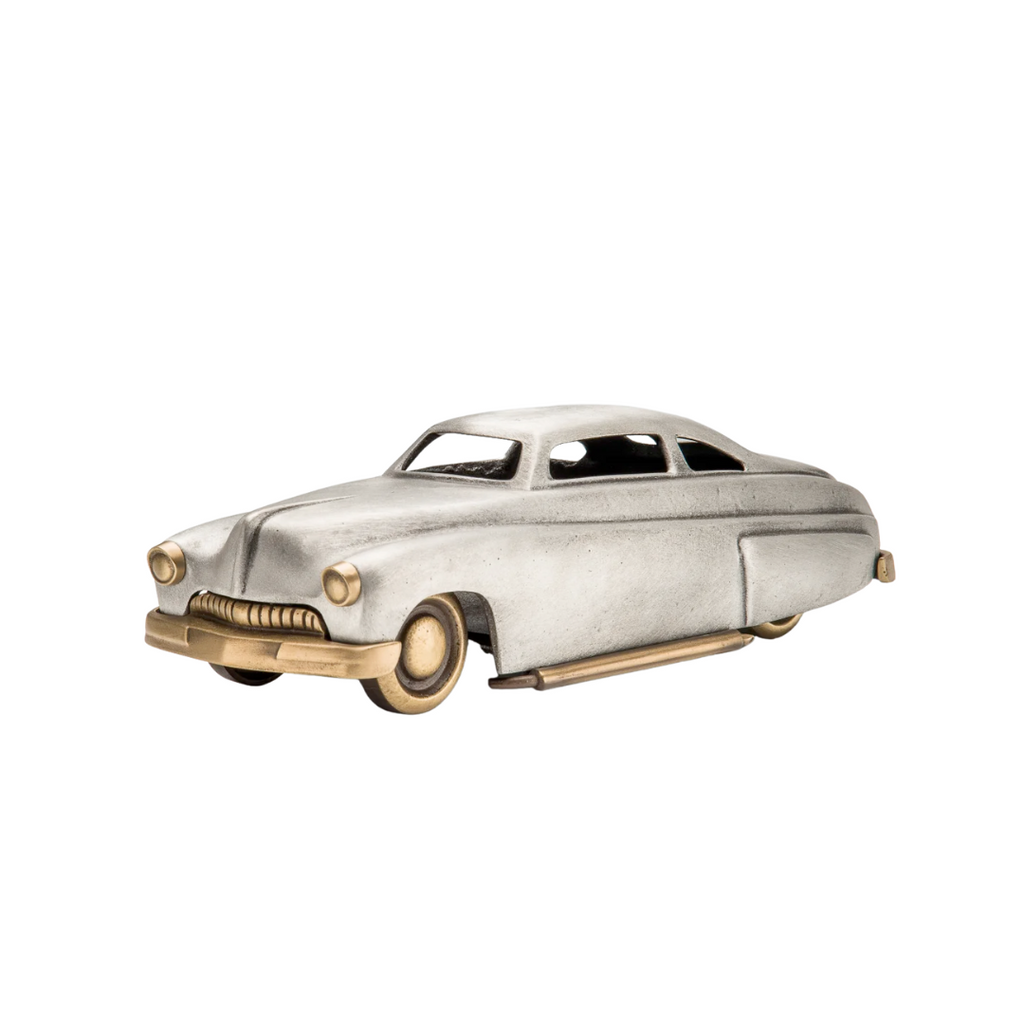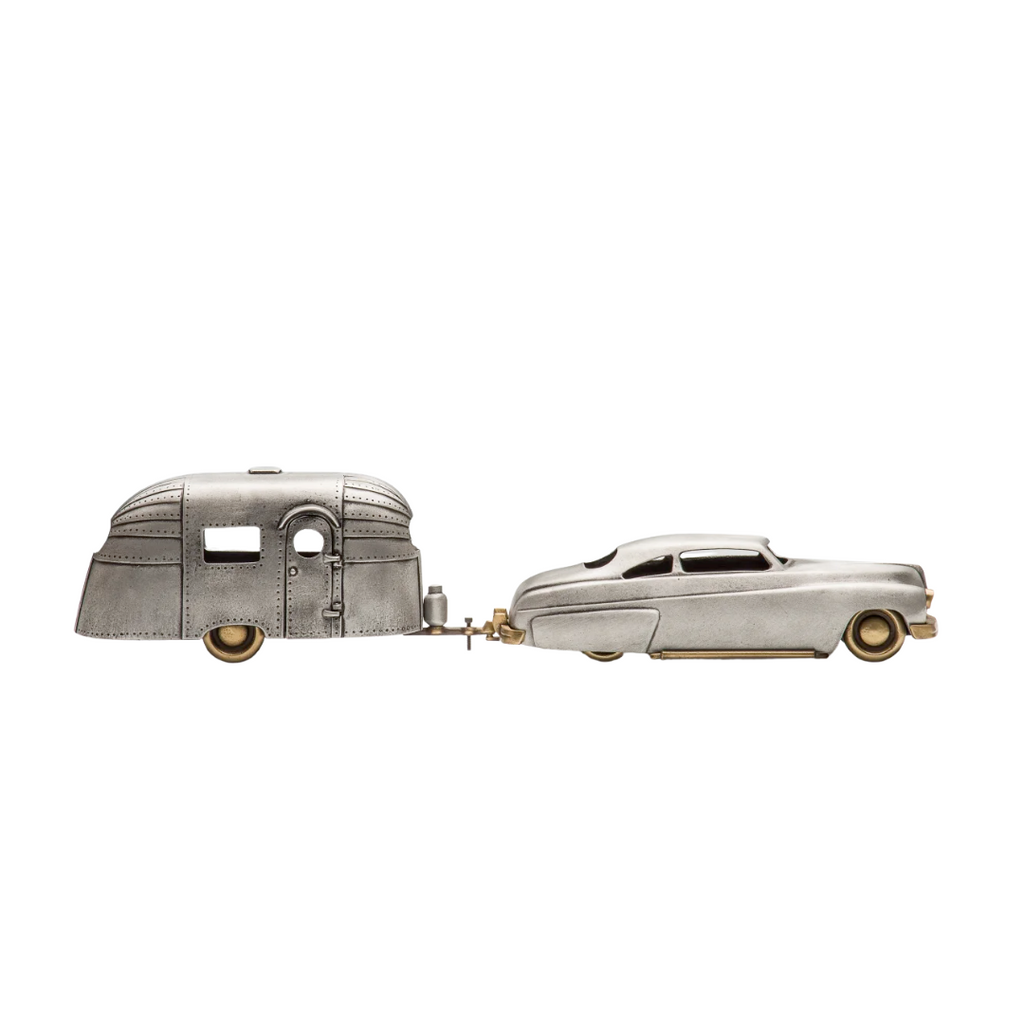 Feeling nostalgic for classic cars? Let the 1949 Merc bring back the good times! This whimsical, yet sophisticated sculpture would make a playful accent for your office or home. Cast in bronze and aluminum, it measures 17" long, 6.5" wide, and 6.5" tall. The Merc can tow the Aerostream (sold separately with SKU 144-20299). Handcrafted in US.
