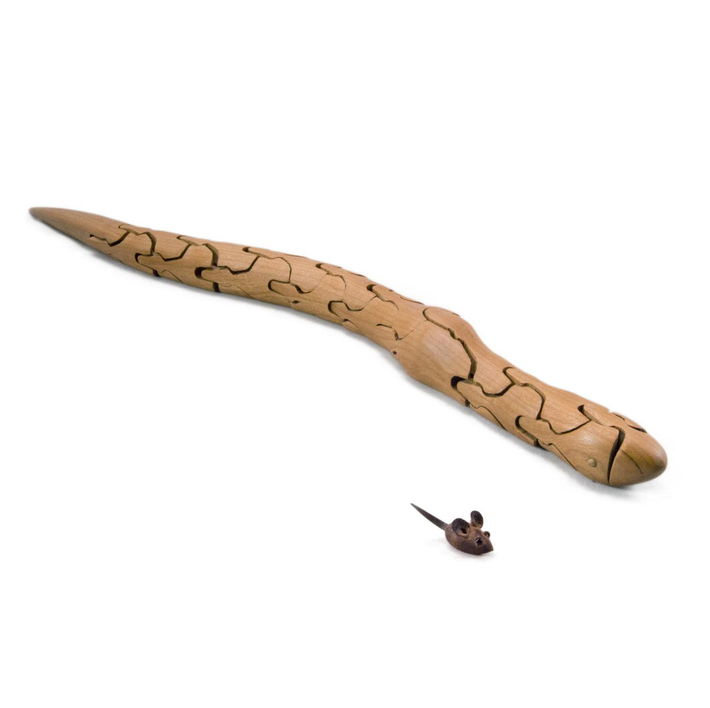 Find your inner child with 3D wooden puzzles by Peter Chapman! Each puzzle is hand sculpted from hardwood, and hides a secret object inside. This snake and mouse puzzle is made of cherry and walnut and measures 20” long.