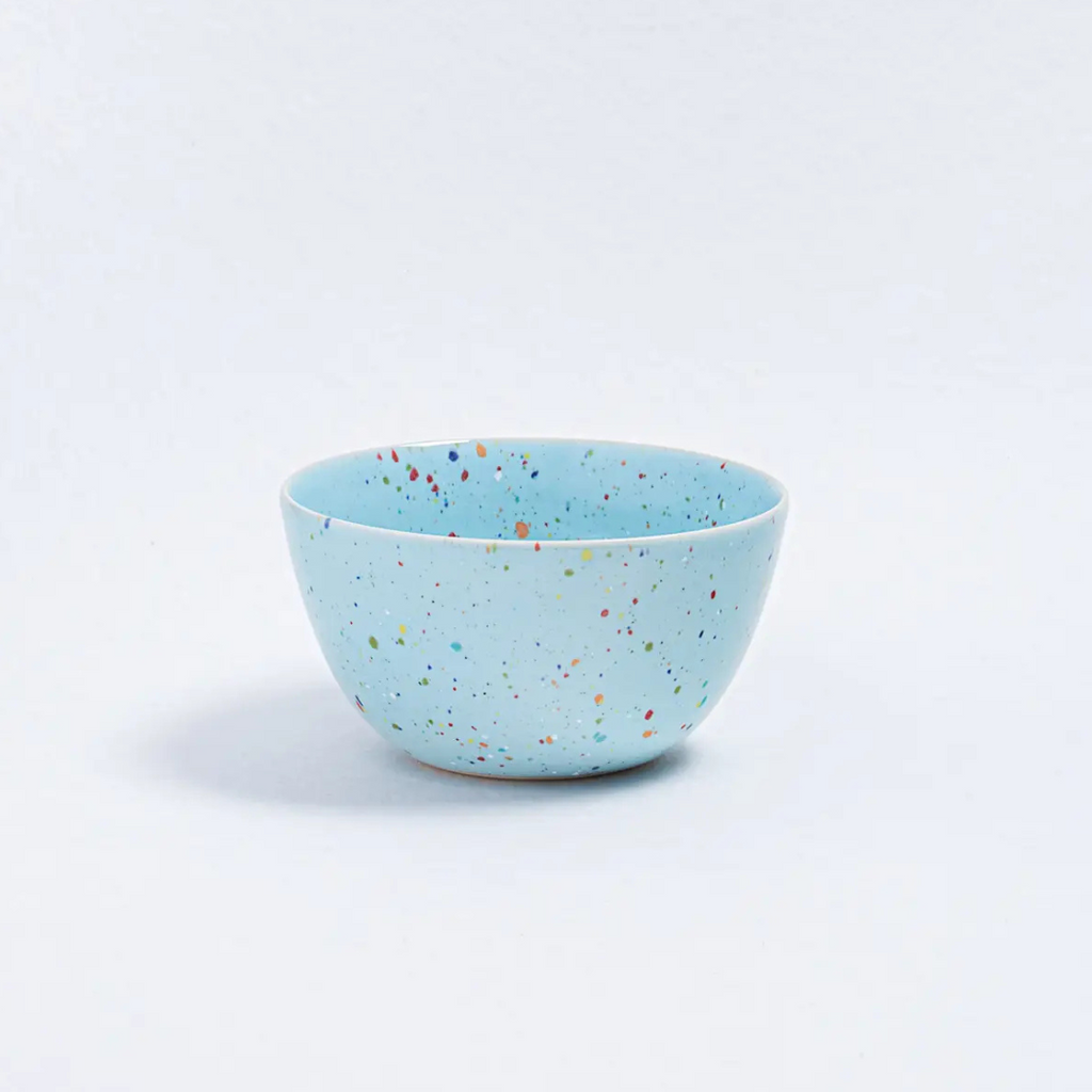 Enjoy your meal in this fun party bowl by Egg Back Home! Handmade from earthenware, the bowl has a shiny glaze finish and a beautiful colorful palette. Great for cereal, ice cream, or whatever your heart desires! Measures approximately 6.25" wide and 3.25" tall. Microwave and dishwasher safe. Handmade in Portugal. Sold individually. Due to its handmade process, the bowls all have natural and unique imperfections. No two are exactly alike. The glaze colors, reactions, and design of the item received may differ from the photo.