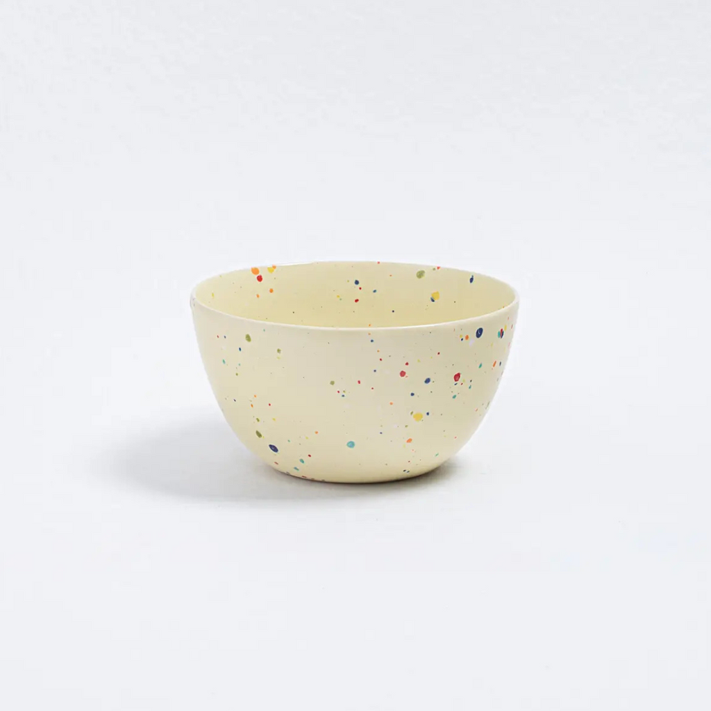 Enjoy your meal in this fun party bowl by Egg Back Home! Handmade from earthenware, the bowl has a shiny glaze finish and a beautiful colorful palette. Great for cereal, ice cream, or whatever your heart desires! Measures approximately 6.25" wide and 3.25" tall. Microwave and dishwasher safe. Handmade in Portugal. Sold individually. Due to its handmade process, the bowls all have natural and unique imperfections. No two are exactly alike. The glaze colors, reactions, and design of the item received may differ from the photo.
