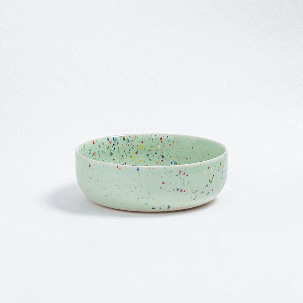 Enjoy your meal in this fun party bowl by Egg Back Home! Handmade from earthenware, the bowl has a shiny glaze finish and a beautiful colorful palette. Great for a single serving or as a serving dish! Measures approximately 7.5" wide and 2.5" tall. Microwave and dishwasher safe. Handmade in Portugal. Sold individually. Due to its handmade process, the bowls all have natural and unique imperfections. No two are exactly alike. The glaze colors, reactions, and design of the item received may differ from the photo.