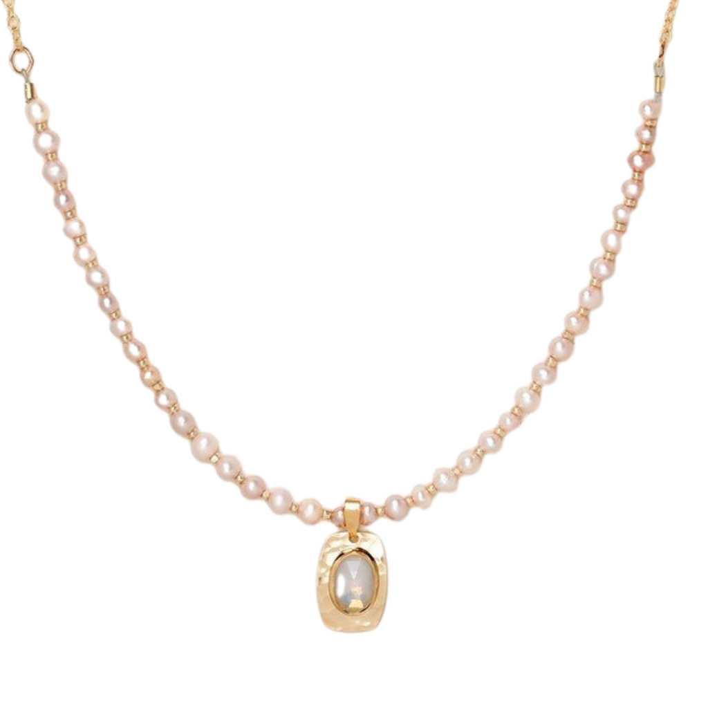 Wear this delicate blush colored necklace by Holly Yashi for a soft, subtle look. Made with freshwater pearls and crystal, this gold overlay necklace is light as a feather. Pendant measures 0.75" L x 0.37" W. Adjustable gold overlay chain can be worn at 18" and 20". Handcrafted in US.