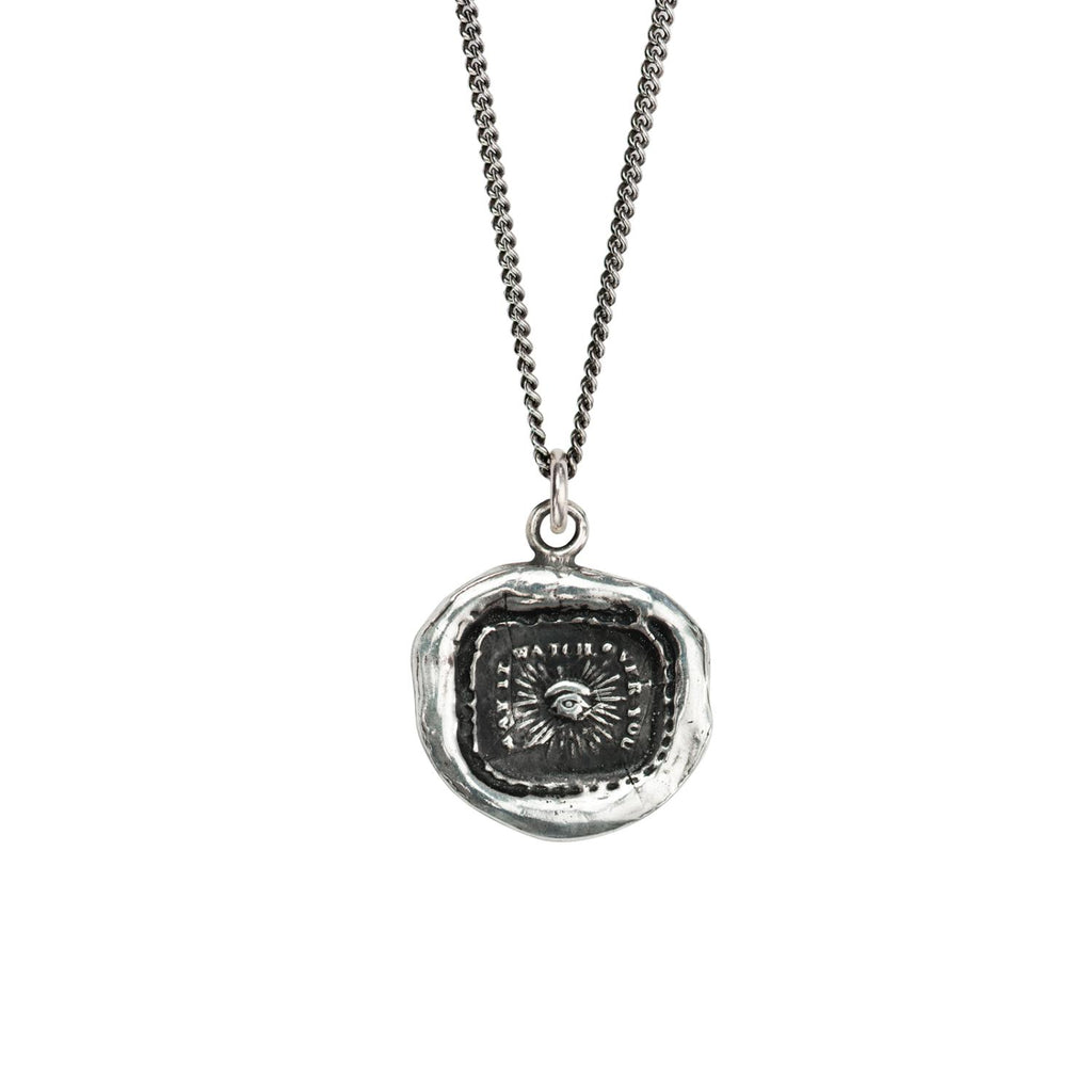 Cast using authentic wax seals and imagery from the Victorian Era, Pyrrha talismans are designed to inspire the wearer with its hearlded meaning. This necklace features an all seeing eye and says "May It Watch Over You". Made of sterling silver. The chain is 20". Comes with a meaning card. Handcrafted in Vancouver, Canada.