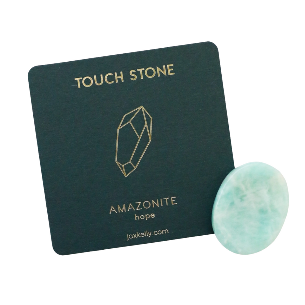 This touch stone by JaxKelly is the perfect tool for centering intentions, focusing energy, relieving stress and more! Made of polished natural Amazonite, this crystal is a beacon of hope. Stone measures approximately 1.5 x 1.25 inches. Each polished natural gemstone will vary in color, tone, and markings.