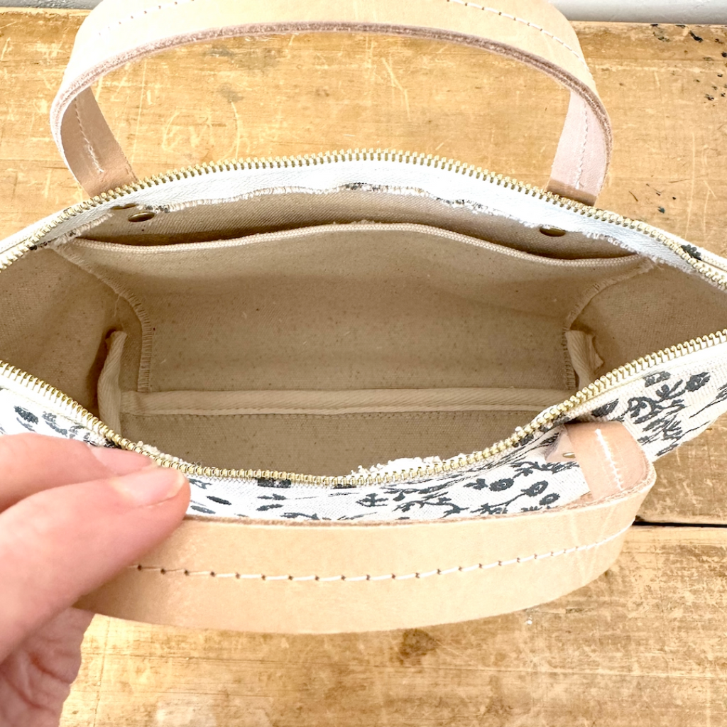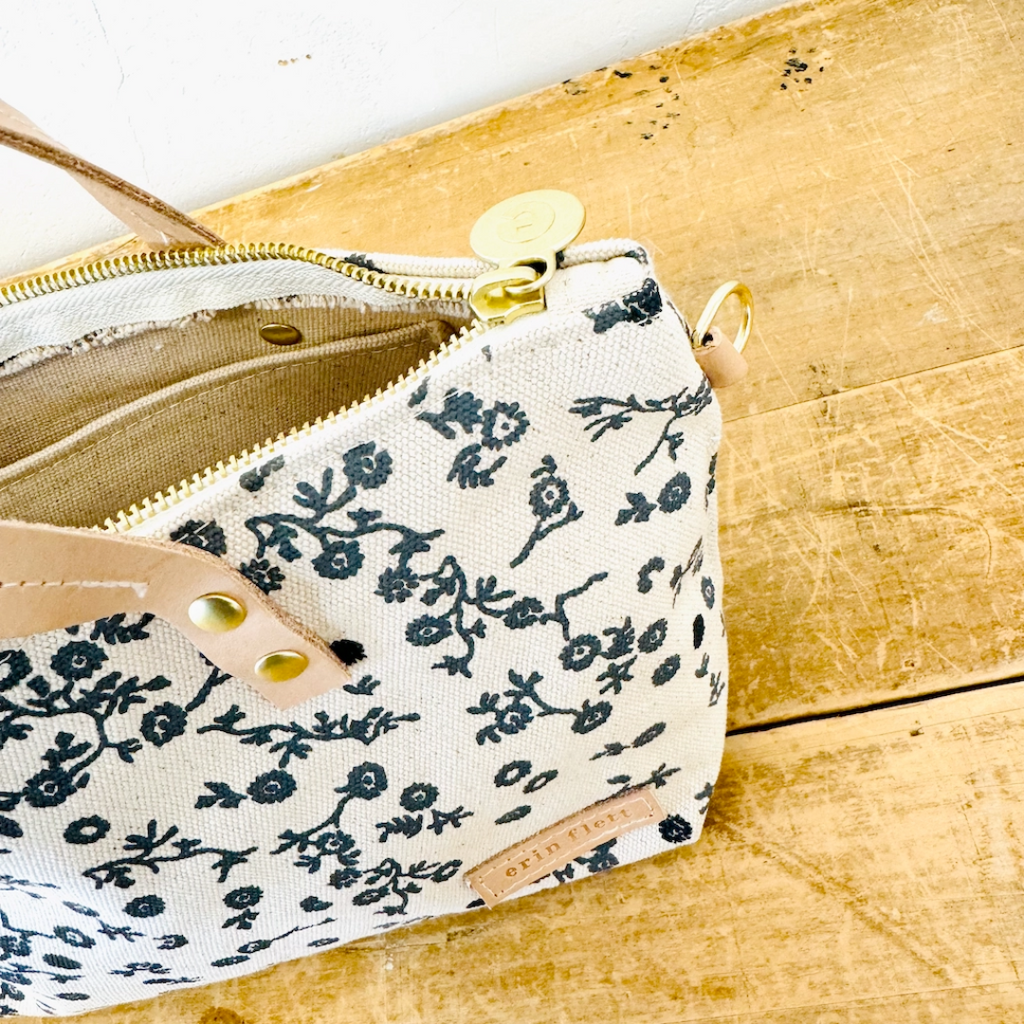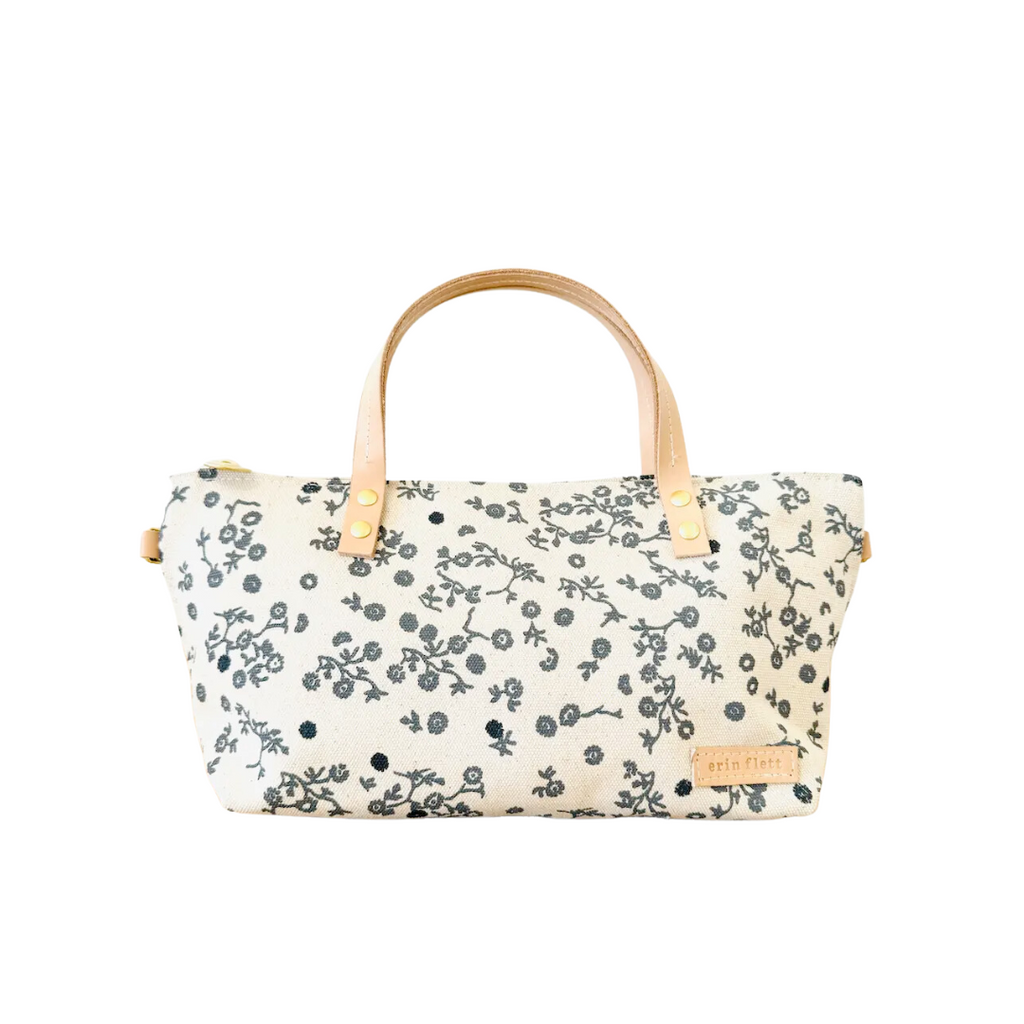 Be bold, colorful, and bring happiness to your everyday life with one of Erin Flett's fun accessories! Created from the Erin's hand-drawn graphics that is screen printed, this satchel is perfect for going out on the town or running errands! With double thick vegan leather tan handles, the bag has a slip pocket inside and plenty of room for your daily essentials. Made with heavy cotton canvas, brass hardware including 8 brass rivets, and leather detailing. Includes extra d-ring on the side, so you can use an adjustable leather strap (sold separately) to wear as a crossbody bag too! Measures 6" tall, 14" wide, and 4" deep. The base measures 4" x 9.5". Spot clean only. Handmade in US.