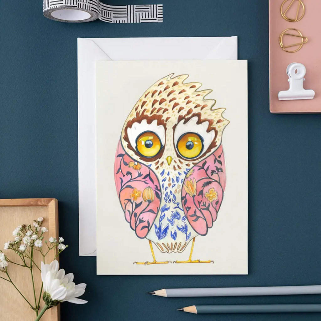 Welcome to the magical world of award-winning artist Daniel Mackie and his animal illustrations! This Baby Owl greeting card measures 7" x 5" and is printed on 300gsm board. The blank card comes with an envelope and is protected in a cello bag. Made in London.
