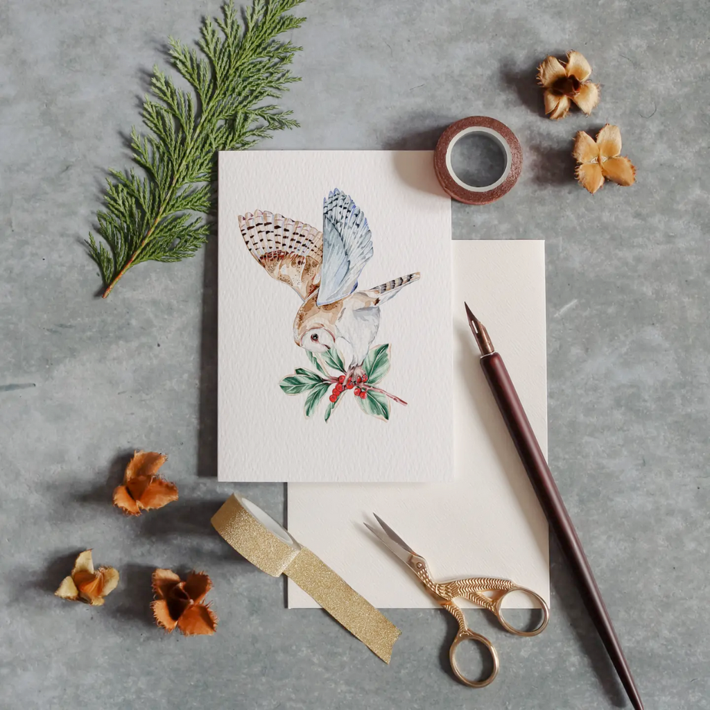 Welcome to the magic that is Sophie Brabbins! This intricately detailed note card features an original watercolor illustration by the artist of a barn owl in flight. Printed on luxury FSC card stock, the blank card measures 4x6" and comes with a high quality envelope.