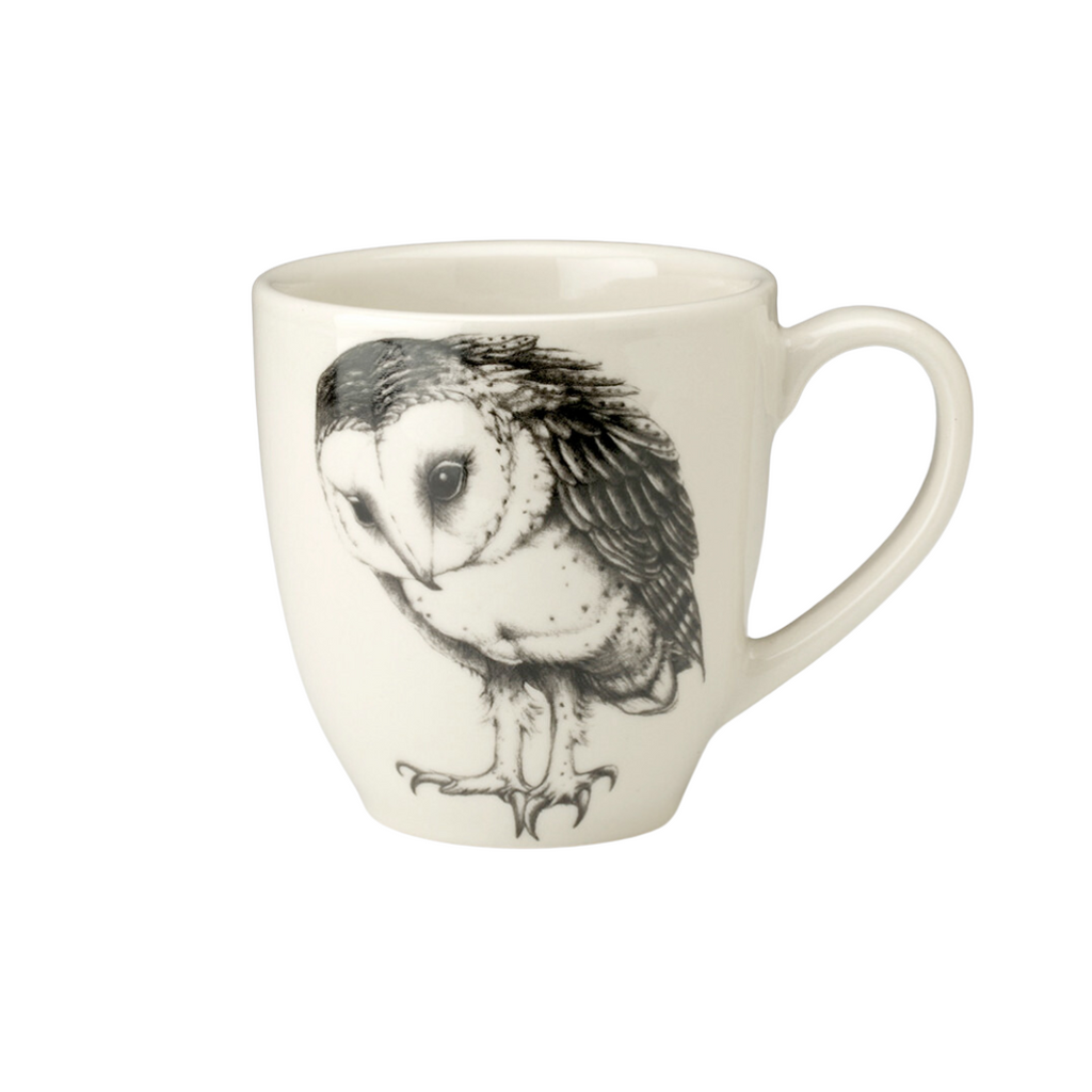 Welcome the charm and serenity that is nature into your home with a beautiful Laura Zindel piece! Both functional and decorative, this mug adorns the artist's original illustration of a barn owl. Made from high-resistance white china. Measures 4.25”. Handcrafted in US.