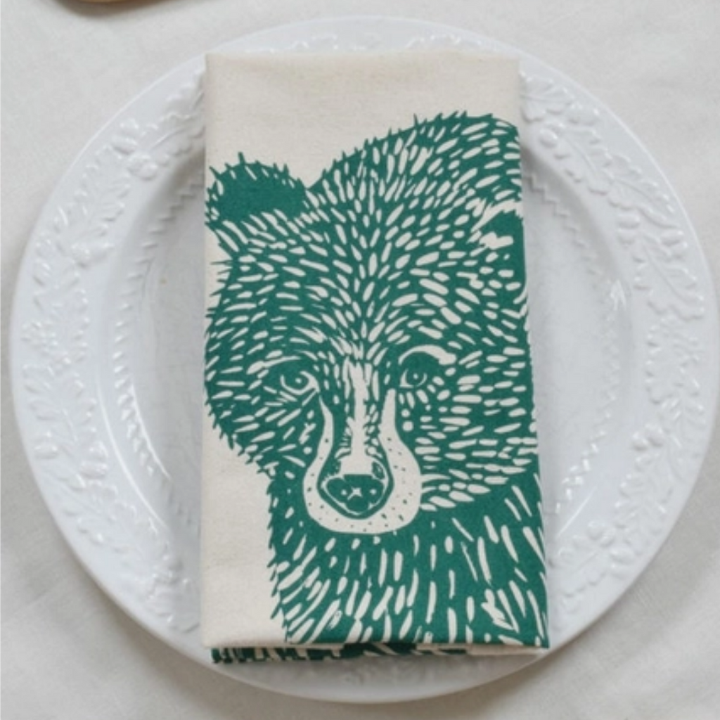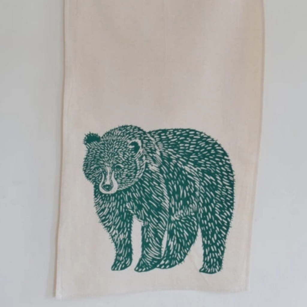 Welcome to the magical world of Hearth and Harrow! This tea towel features the artist's original design hand printed on organic cotton using environmentally friendly water-based ink. Measures 17" x 38". Slight variations in print are possible. Care instructions: Machine wash cold, tumble dry. Handmade in US.