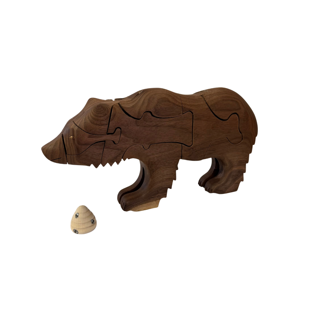 Bear with Bee hive Puzzle in Walnut