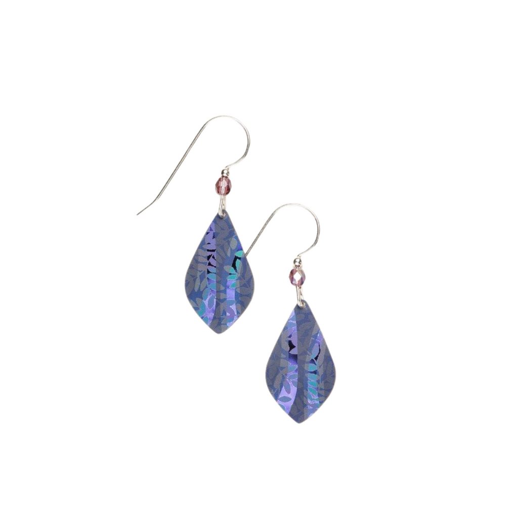 Add a pop of color and timeless design with these Riverwind earrings by Holly Yashi. Made of niobium, these earrings are light and feature design of leaves in colors of blue and purple. Measure approximately 1.5" L x 0.5" W. With sterling silver earwires. Handcrafted in US.
