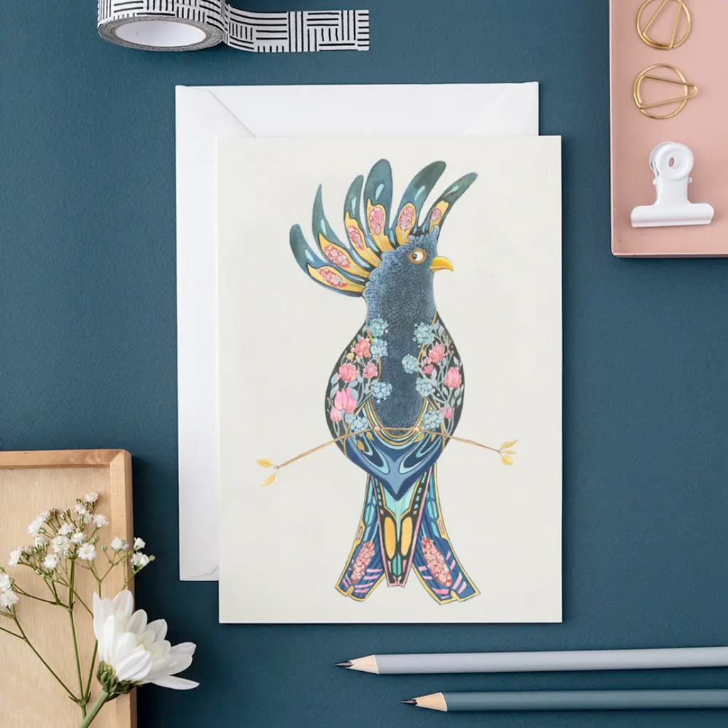Welcome to the magical world of award-winning artist Daniel Mackie and his animal illustrations! This black cockatoo greeting card measures 7" x 5" and is printed on 300gsm board. The blank card comes with an envelope and is protected in a cello bag. Made in London.