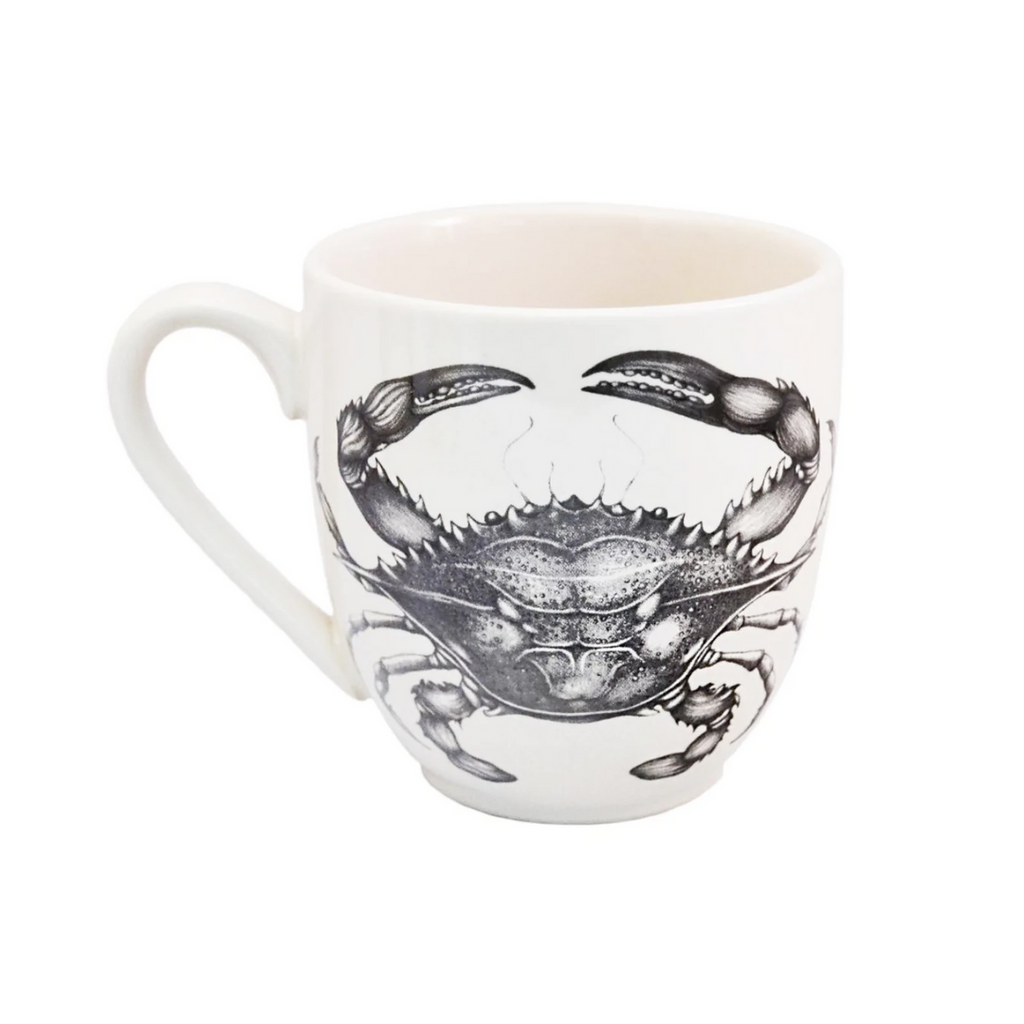Welcome to the charm and serenity that is nature into your home with a beautiful Laura Zindel piece! Both functional and decorative, this mug adorns the artist's original illustration of a blue crab. Made from high-resistance white china. Measures 4.25 inches tall. Handcrafted in US. Can be placed in the microwave and dishwasher.