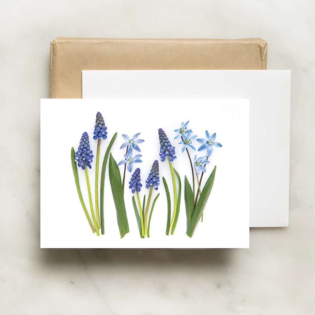 Created from a photo of fresh specimens, this Blue Spring Flowers card by Bottle Branch is a beautiful way to help commemorate any occasion. Printed on an appealingly soft and hefty card stock that is a delight to touch and use. The card measures 4.25" x 5.5" and includes a matching envelope. Inside is blank. Packaged sustainably in plant-based, compostable cello envelope.