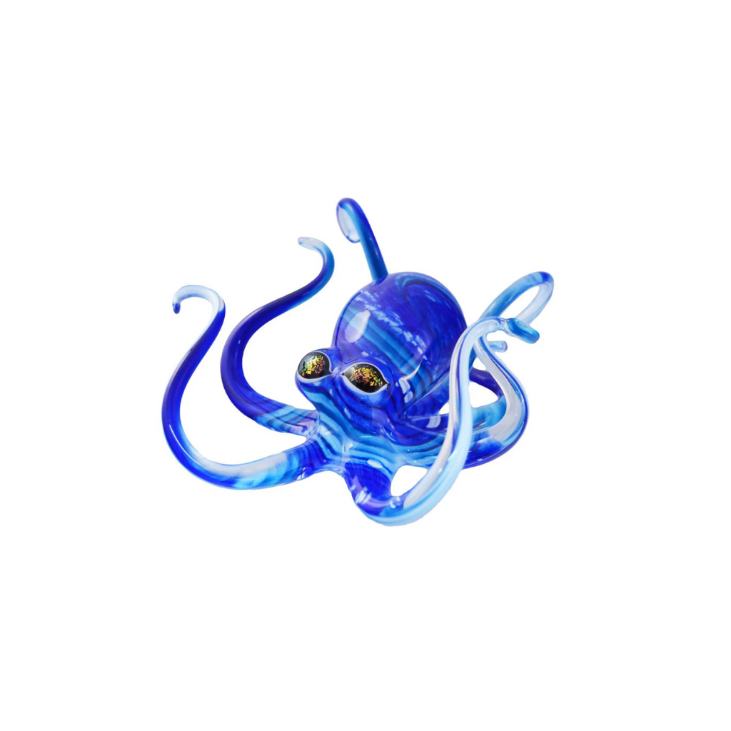 One of nature's curiosities is beautifully captured in this hand blown octopus sculpture. Using vibrant colors for a dramatic look, the artist captures the sea creature's fluid movements brilliantly! Measures approx. 8.5 x 6.5 x 4.25 inches. Color and shape may vary slightly as each piece is handblown. Handcrafted in the US.