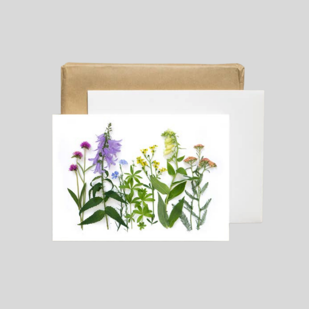 Created from a photo of fresh specimens, this Botanical Summer Wildflower Rainbow card by Bottle Branch is a beautiful way to help commemorate any occasion. Printed on an appealingly soft and hefty card stock that is a delight to touch and use. The card measures 4.25" x 5.5" and includes a matching envelope. The inside is blank. Packaged sustainably in plant-based, compostable cello envelope.