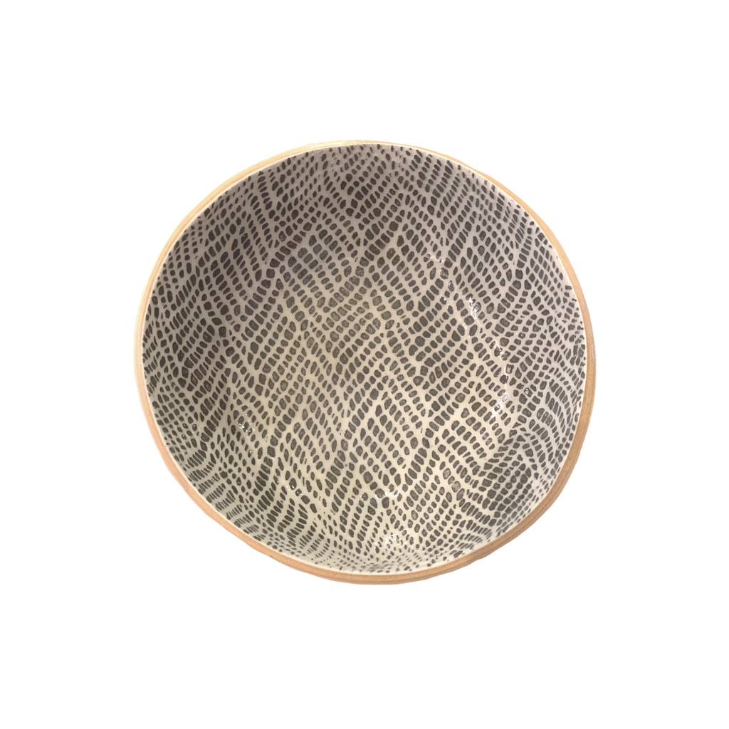 This small coupe dish by Terrafirma is functional as it is beautiful. Using fabric and lace as a stencil to create a striking braided pattern, this charcoal ceramic dish is great for everyday use and for entertaining. Enhance your table and combine with other pieces by the artist for a unique table setting! Dishwasher safe. Measures 7”. Handmade in the US.