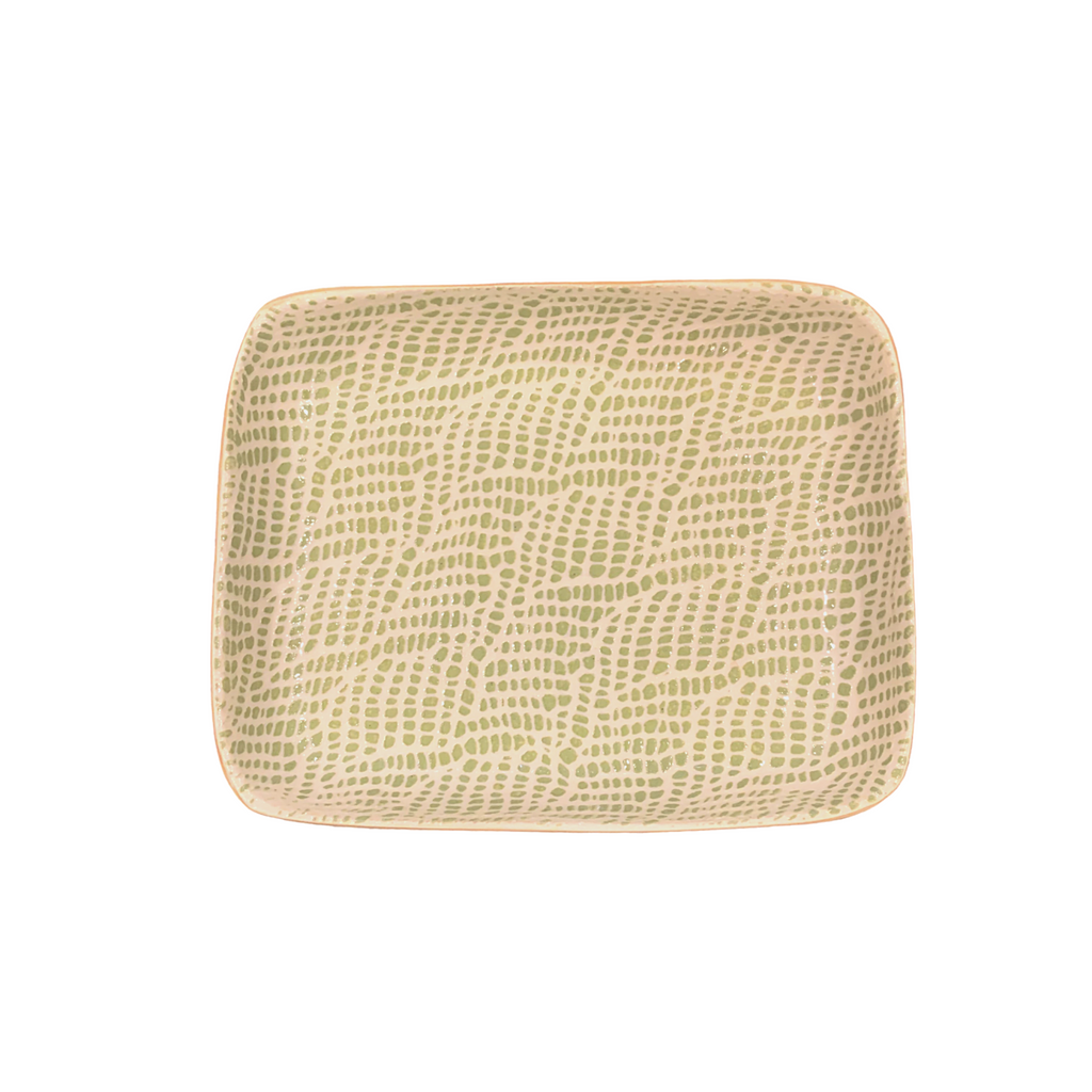 This ceramic tidbit bowl by Terrafirma is functional as it is beautiful. Using fabric and lace as a stencil to create a striking braided pattern, this citrus-colored dish is great for everyday use and for entertaining. Enhance your table and combine with other pieces by the artist for a unique table setting! Dishwasher safe. Measures 8” x 6.5". Handmade in the US.