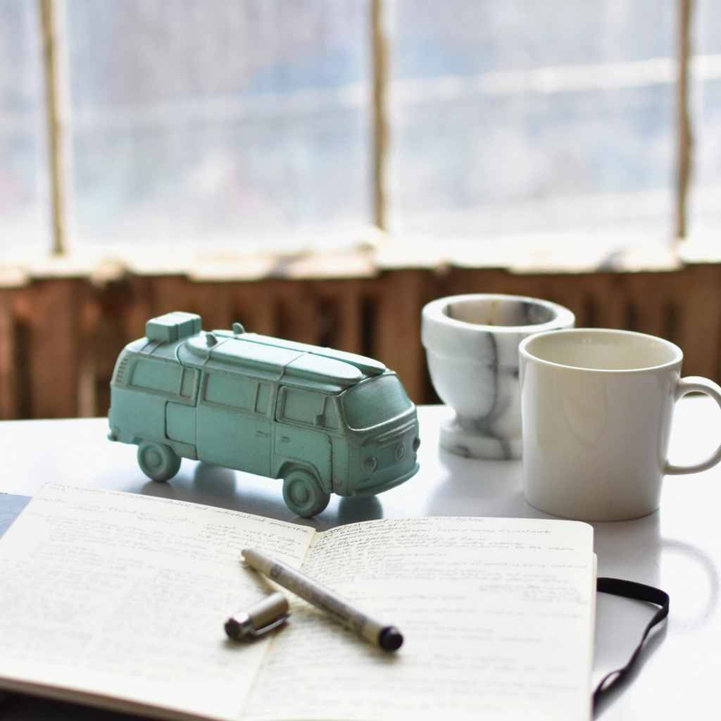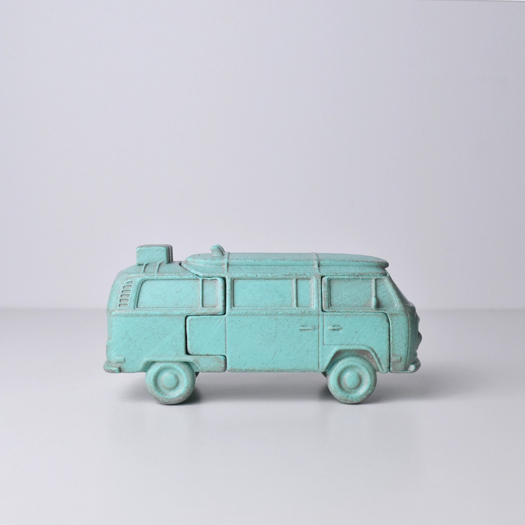 Part puzzle, part toy, this buddy bus sculpture by Locknesters measures 6.5" long,l and consists of 3 pieces. The puzzles are 3D printed from bioplastic, and are hand sanded, barrel tumbled, and top coated for a smooth feel. Makes a great gift or conversation piece! Handmade in Brooklyn, NY.