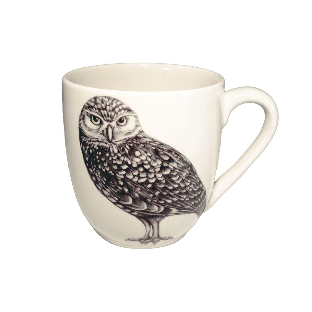 Welcome to the charm and serenity that is nature into your home with a beautiful Laura Zindel piece! Both functional and decorative, this mug adorns the artist's original illustration of a burrowing owl. Made from high-resistance white china. Measures 4.25 inches tall. Handcrafted in US. Can be placed in the microwave and dishwasher.