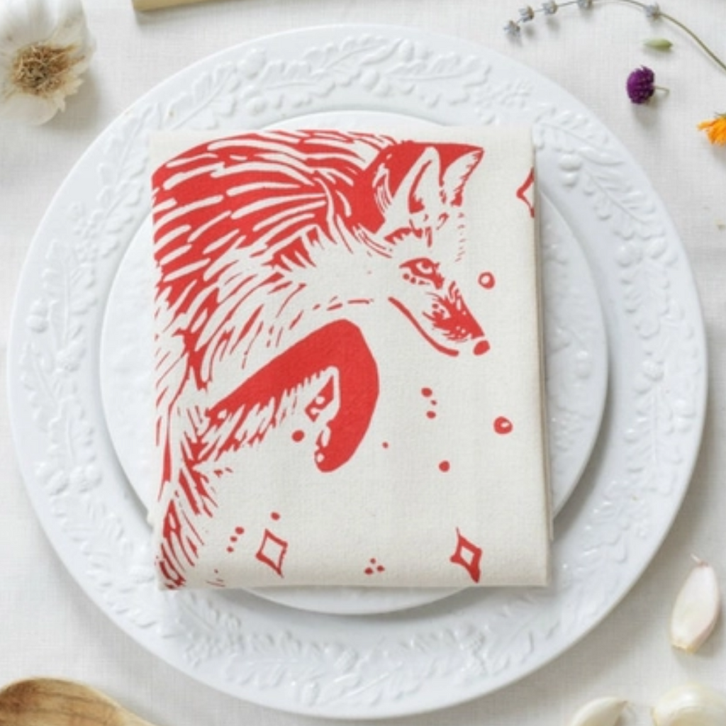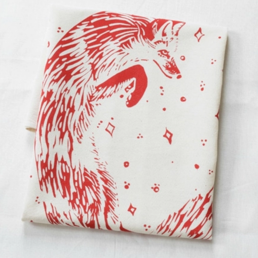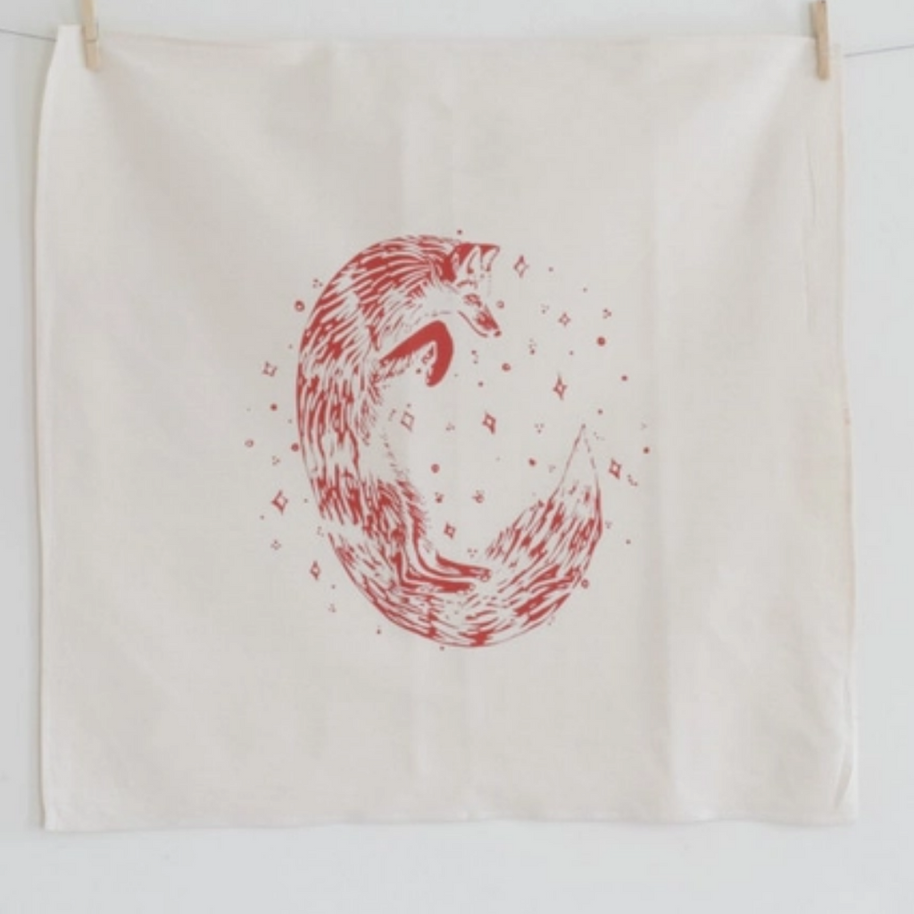 Welcome to the magical world of Hearth and Harrow! This tea towel features the artist's original design hand printed on organic cotton using environmentally friendly water-based ink. Measures 29" x 30". Slight variations in print are possible. Care instructions: Machine wash cold, tumble dry. Handmade in US.
