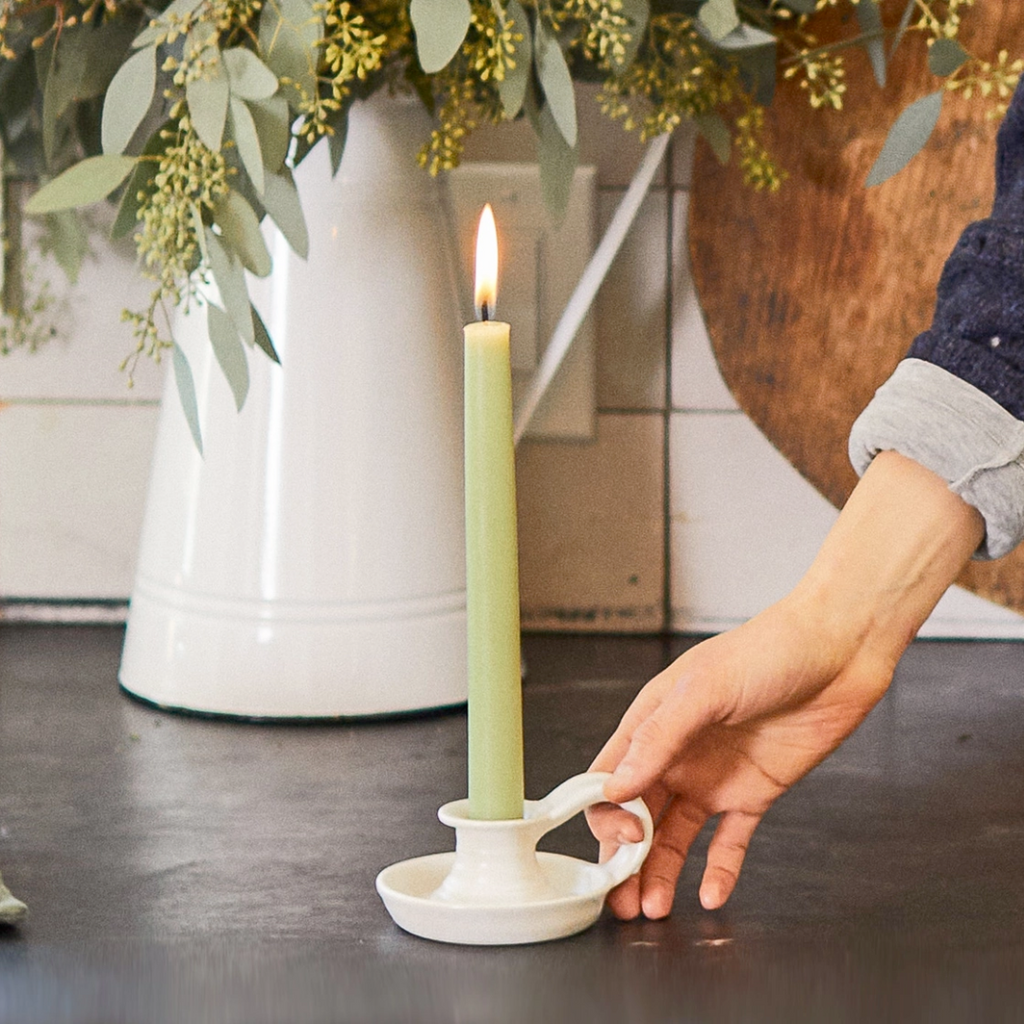 Ceramic Candle Holder with Handle in White