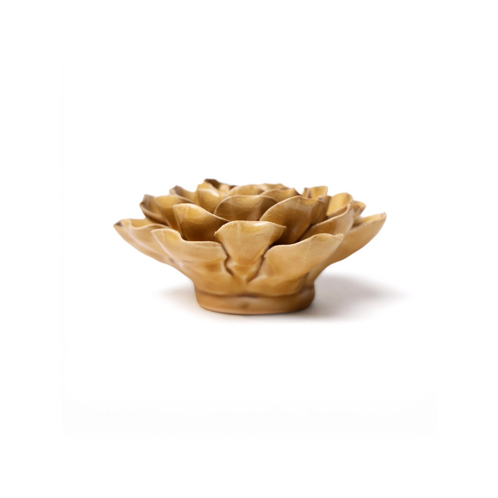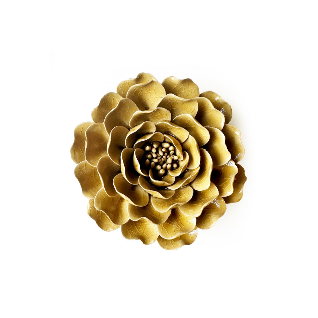 This ceramic peony by Chive looks great displayed on the wall or on the table! Hand made and glazed with a beautiful caramel glaze, this flower measures approx. 4.9" x 4.9" x 2.2". Keyhole in the back makes for simple hanging with a screw. Mix and match with a variety of color and size flowers to curate a unique collection!