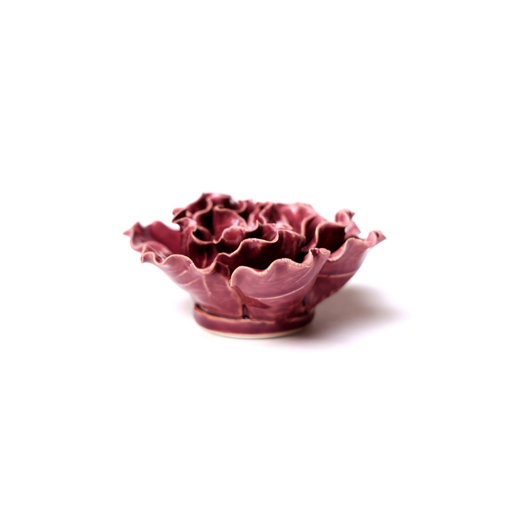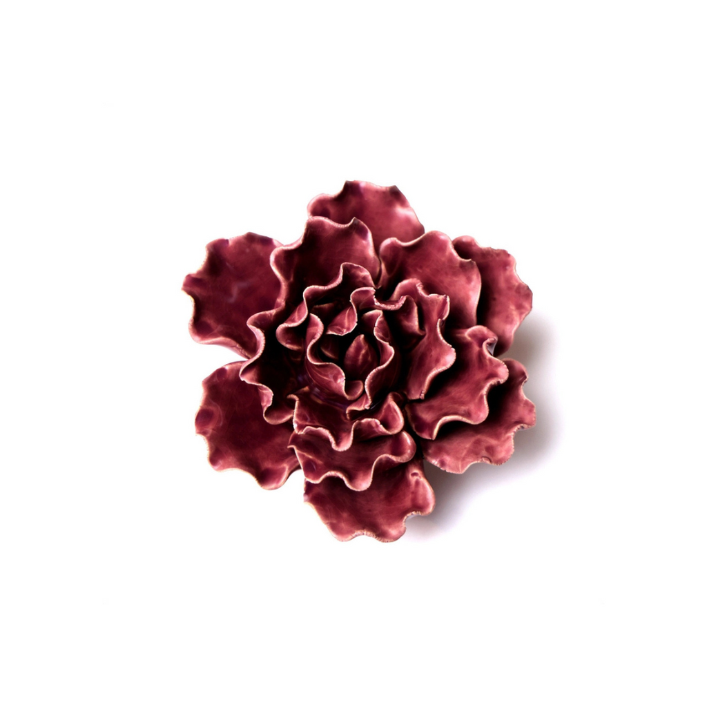 This ceramic sea lettuce by Chive looks great displayed on the wall or on the table! Hand made and glazed with a beautiful purple glaze, this flower measures approx. 4.5" x 4.5" x 2". Keyhole in the back makes for simple hanging with a screw. Mix and match with a variety of color and size flowers to curate a unique collection!