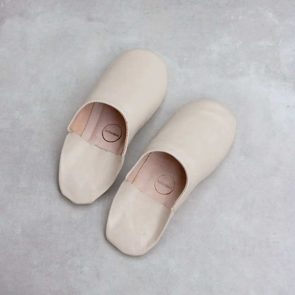 These Bohemia Design slippers are made by a team of highly skilled craftsmen in a family run workshop in Marrakech using traditional techniques. Made of blue grey dyed leather and size medium (US 7-8.5). Handmade from the finest quality hides, the leather is cured using organic processes, which may leave a residual scent that will fade once they have had a chance to air out. The leathers are dyed and dried in the sun before being stitched. Minor flaws and imperfections are characteristic of natural materials and traditional methods. CARE: These leather soled slippers are designed for indoor use on smooth, dry surfaces and are not suitable for outdoor or poolside wear. We recommend cleaning your babouche with a dry or slightly damp cloth keeping use of water to an absolute minimum.