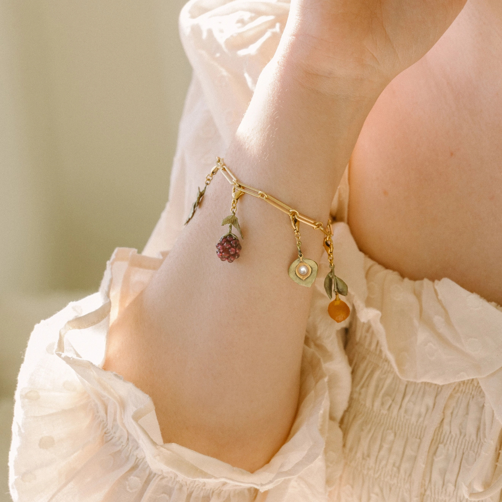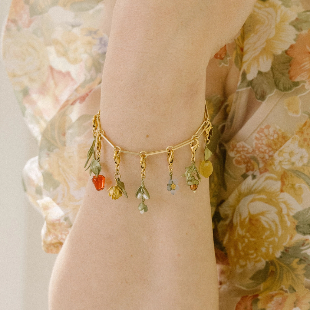 Behold nature and all its beauty with this charm bracelet by Silver Seasons! Made with 24k gold plated brass, this bracelet is perfect for adding your favorite botanical charms. The bracelet is 7.5-8.5" long and the links are approximatly .20" wide. Handmade in US.