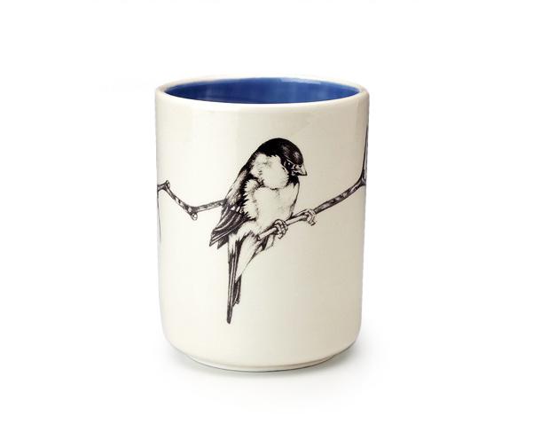 Welcome the charm and serenity that is nature into your home with a beautiful Laura Zindel piece! Both functional and decorative, this utensil cup adorns the artist's original illustration of a black-capped chickadee. Made from earthenware and glazed with non-toxic, low-fire glazes. Measures 5.25 inches in diameter and 7 inches tall. Handcrafted in US Hand wash only in warm soapy water with a non-abrasive cloth; they should not be placed in the oven, microwave, or dishwasher and should be used only as serving dishes. Avoid storing for long periods of time in direct sunlight.