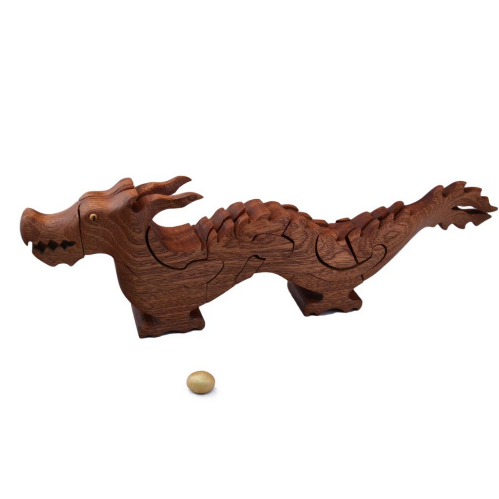 Chinese Dragon with Gold Egg Puzzle in Mahogany