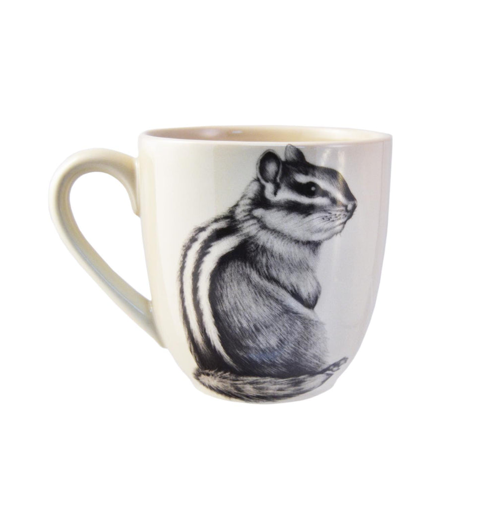Welcome to the charm and serenity that is nature into your home with a beautiful Laura Zindel piece! Both functional and decorative, this mug adorns the artist's original illustration of a chipmunk. Made from high-resistance white china. Measures 4.25 inches tall. Handcrafted in US. Can be placed in the microwave and dishwasher.