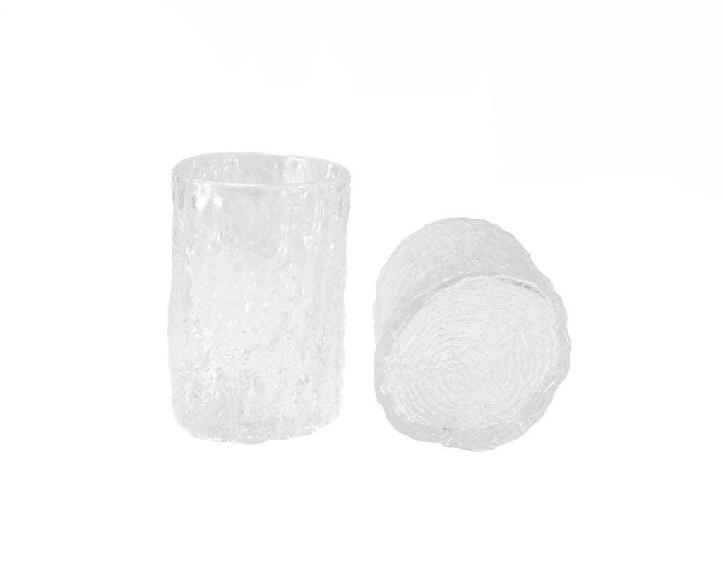 The stump cup by Vitreluxe founder Lynn Read was created using an actual oak branch in order to mimic the organic textures of a tree bark. You will love the simple, organic nature of this functional cast glass pair, which includes two clear tumblers. Measures 4 inches tall. Handcrafted in US.