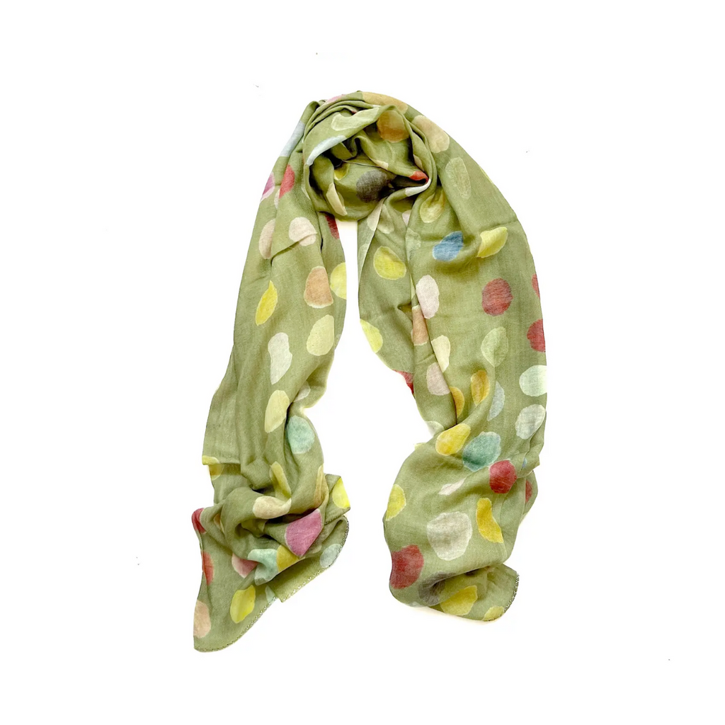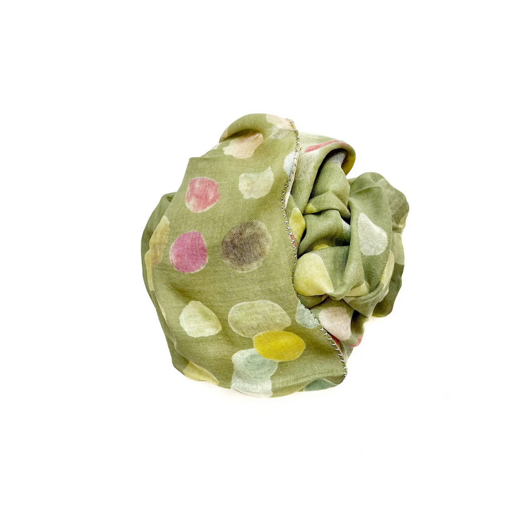 Combining traditional techniques with a contemporary design, this handwoven wool and silk multi dots scarf with hand embroidered finishing at the two ends by Marigold Row is the perfect accessory year around. Measures 28"x 80". Dry clean only. Handmade in India.