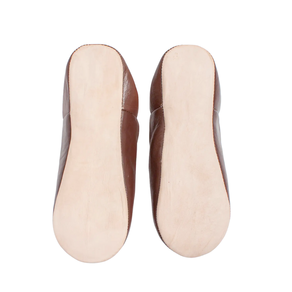 These Bohemia Design slippers are made by a team of highly skilled craftsmen in a family run workshop in Marrakech using traditional techniques. Made of black dyed leather and size men's medium (men's US 10-11). Handmade from the finest quality hides, the leather is cured using organic processes, which may leave a residual scent that will fade once they have had a chance to air out. The leathers are dyed and dried in the sun before being stitched. Minor flaws and imperfections are characteristic of natural materials and traditional methods. CARE: These leather soled slippers are designed for indoor use on smooth, dry surfaces and are not suitable for outdoor or poolside wear. We recommend cleaning your babouche with a dry or slightly damp cloth keeping use of water to an absolute minimum.