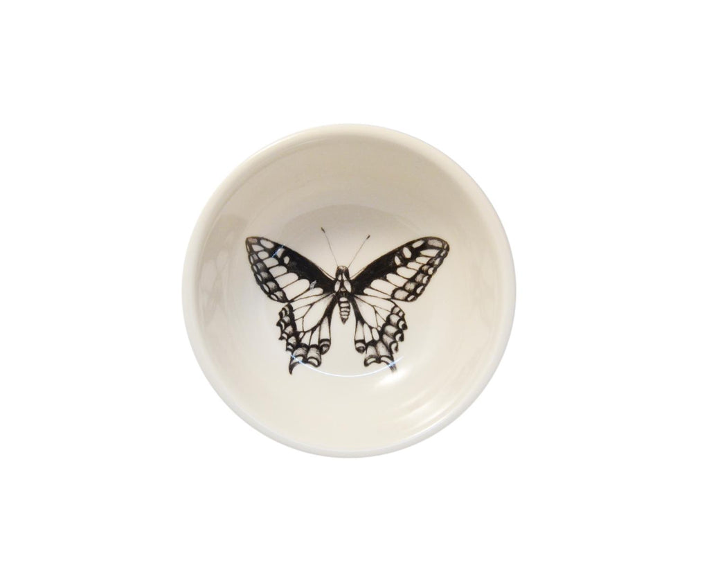 Welcome to the charm and serenity that is nature into your home with a beautiful Laura Zindel piece! Both functional and decorative, this bowl adorns the artist's original illustration of a swallowtail butterfly. Made from high-resistance white china. Measures 5.5" wide and 2" deep. Microwave and dishwasher safe. Handcrafted in US.