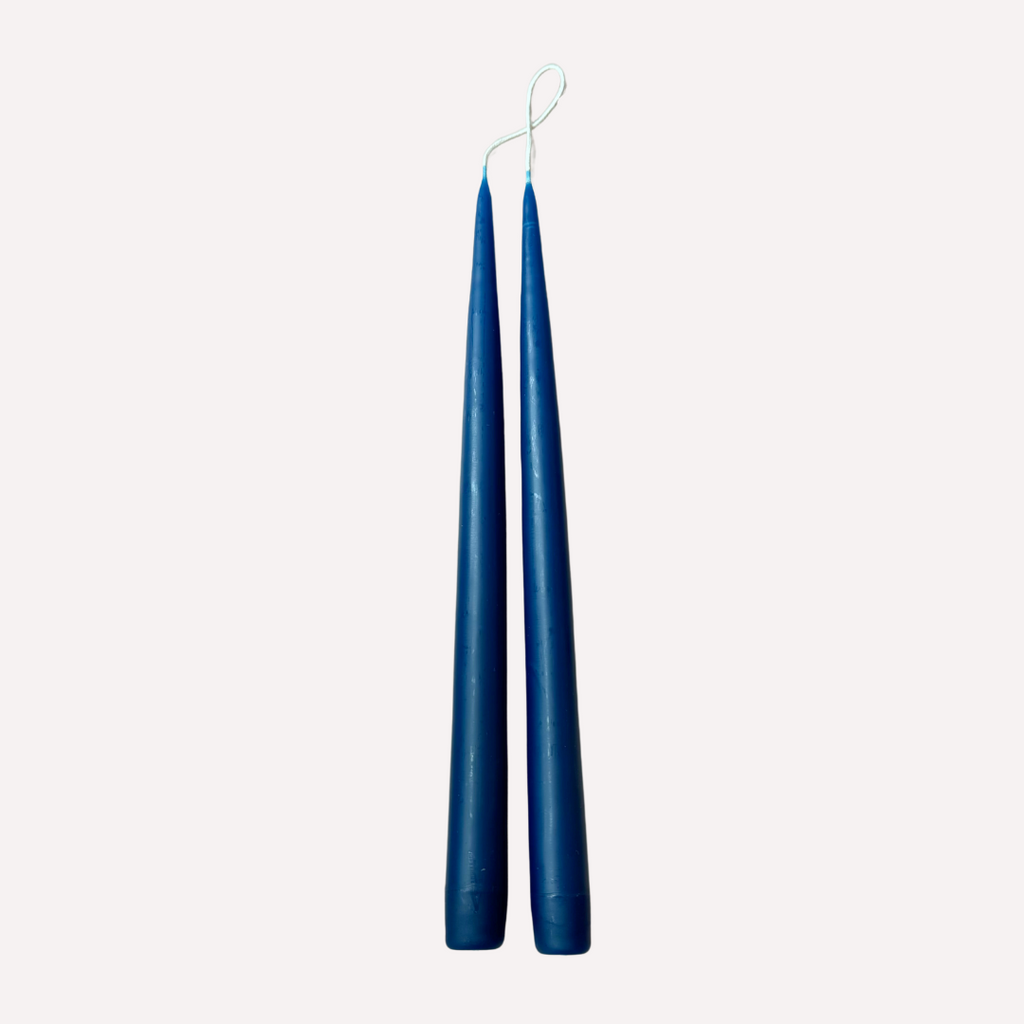 Combining old-world techniques with a blend of beeswax, other premium waxes and dyes, Danica Design creates hand-dipped candles in an array of colors. Unscented and solid color throughout, each candle is dipped 50 times for color depth and consistency. The tapered candles measure 13" in length and 7/8" at the base and have a burning time of approximately 11 hours. The candles are both smoke and drip free. The candles are sold by the pair with a joined wick. Handmade in US.