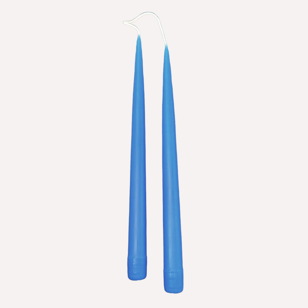 Combining old-world techniques with a blend of beeswax, other premium waxes and dyes, Danica Design creates hand-dipped candles in an array of colors. Unscented and solid color throughout, each candle is dipped 50 times for color depth and consistency. The tapered candles measure 13" in length and 7/8" at the base and have a burning time of approximately 11 hours. The candles are both smoke and drip free. The candles are sold by the pair with a joined wick. Handmade in US.