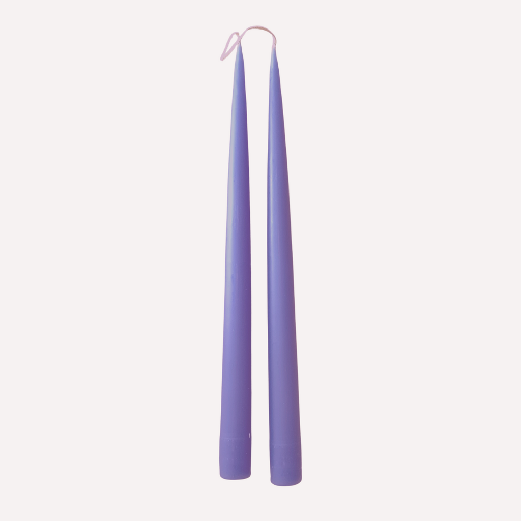 Combining old-world techniques with a blend of beeswax, other premium waxes and dyes, Danica Design creates hand-dipped candles in an array of colors. Unscented and solid color throughout, each candle is dipped 50 times for color depth and consistency. The tapered candles measure 13" in length and 7/8" at the base and have a burning time of approximately 11 hours. The candles are both smoke and drip free. The candles are sold by the pair with a joined wick. Handmade in US.