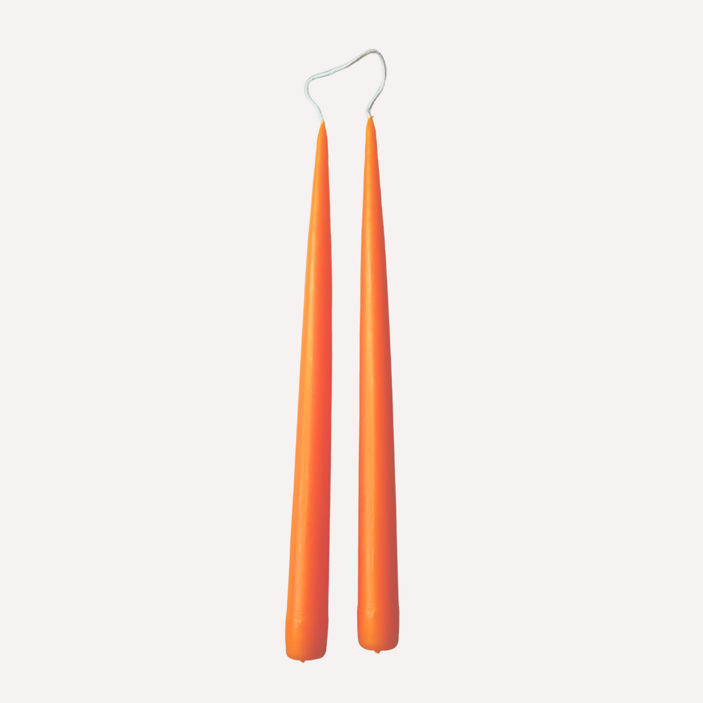 Combining old-world techniques with a blend of beeswax, other premium waxes and dyes, Danica Design creates hand-dipped candles in an array of colors. Unscented and solid color throughout, each candle is dipped 50 times for color depth and consistency. The tapered candles measure 13" in length and 7/8" at the base and have a burning time of approximately 11 hours. The candles are both smoke and drip free. The candles are sold by the pair with a joined wick. Handmade in US.