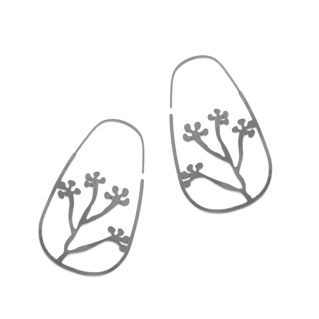 Redolent of shapes and patterns found in nature and in textiles, these stainless steel earrings by Daphne Olive are elegant, yet bold and fun to wear. Made of stainless steel, these earrings measure 1.6 x 0.7 in. Handcrafted in US.