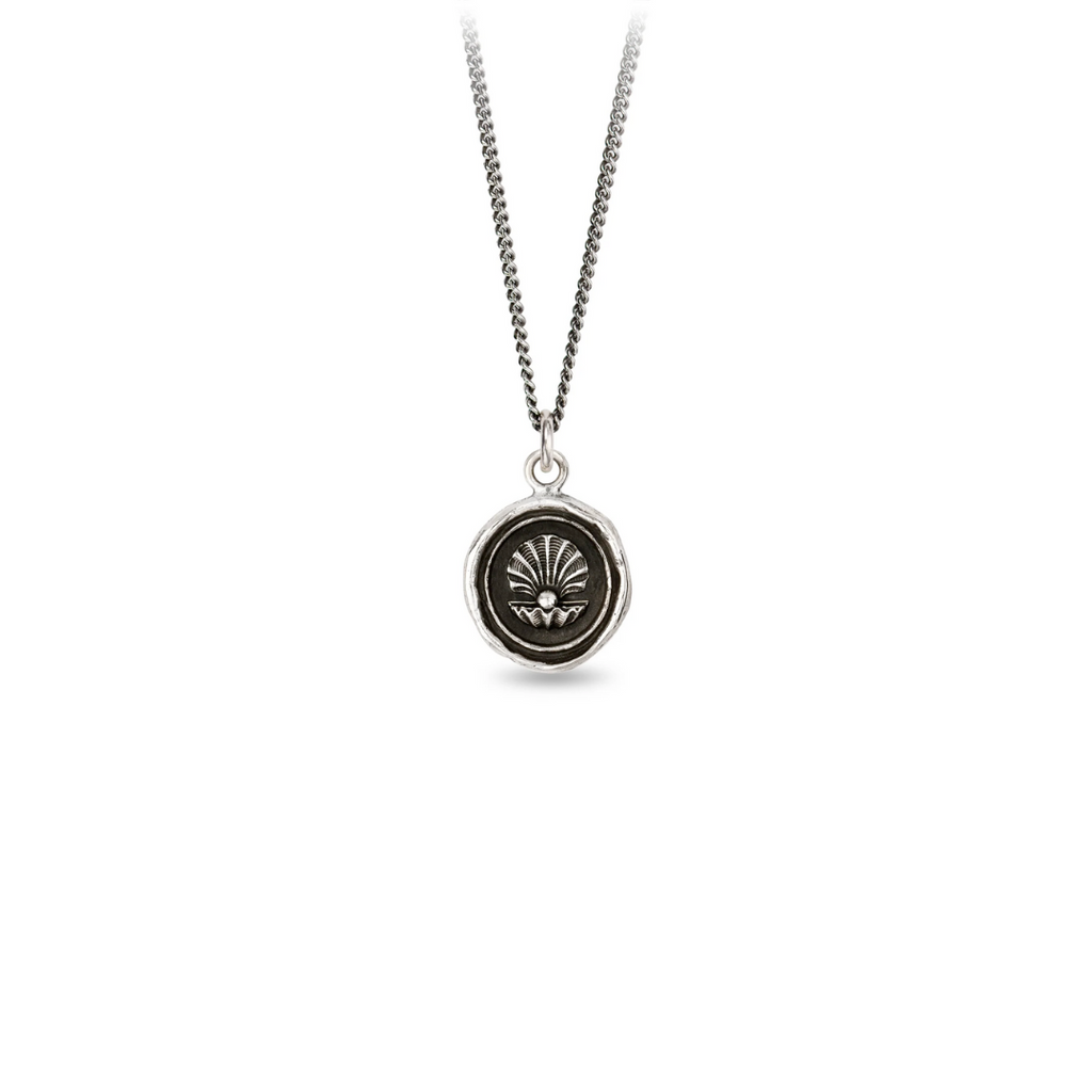 Cast using authentic wax seals and imagery from the Victorian Era, Pyrrha talismans are designed to inspire the wearer with its heralded meaning. This talisman features a pearl in an oyster shell as a reminder that life is full of possibilities waiting to be explored. It encourages a sense of ambition and willingness to make the most of opportunities to achieve anything you want in life. Sustainably cast in 100% recycled sterling silver, the pendant measures 0.63" x 0.67" and comes on an 18" sterling silver curb chain. Comes with a letterpress meaning card (handmade from recycled materials) and a black cotton Pyrrha pouch. Lovingly handcrafted in Vancouver, Canada.