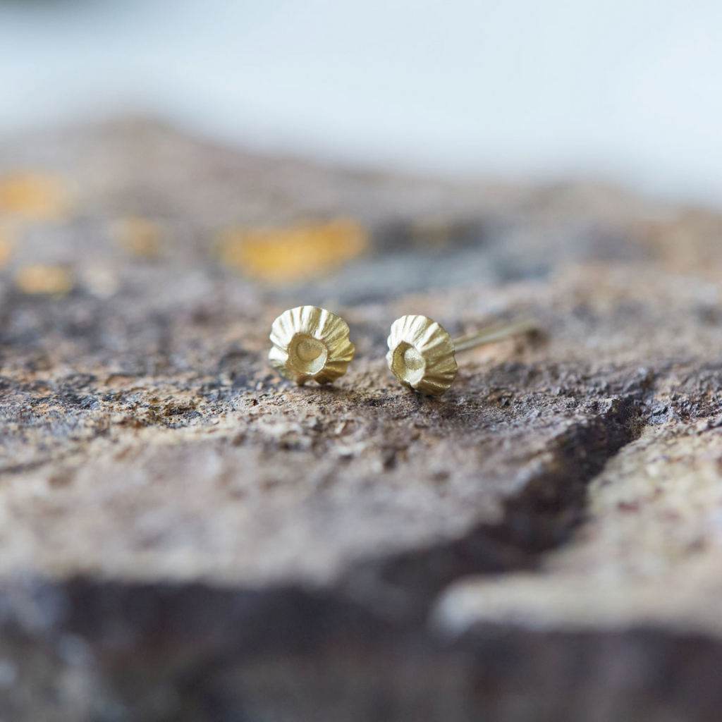 Cherish nature's beautiful offerings with Hannah Blount Jewelry! Her simple, sophisticated aesthetic charms its way through her nature-inspired designs. These tiny barnacle stud earrings are made of 14k yellow gold, and measure 0.2 inches in diameter. Handcrafted in US.