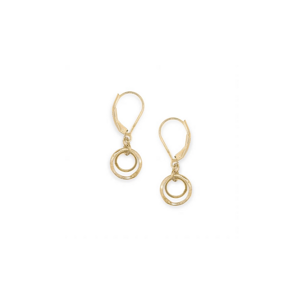 Minimalism at its best, these hand formed and hammered tiny spin earrings by Freshie & Zero are light, sexy, and great for everyday wear! These not-so-perfect hammered gold filled circles are suspended on gold filled leverback earwires. The earrings measure 1.13" tall and 0.43" at the widest. Handmade in US.