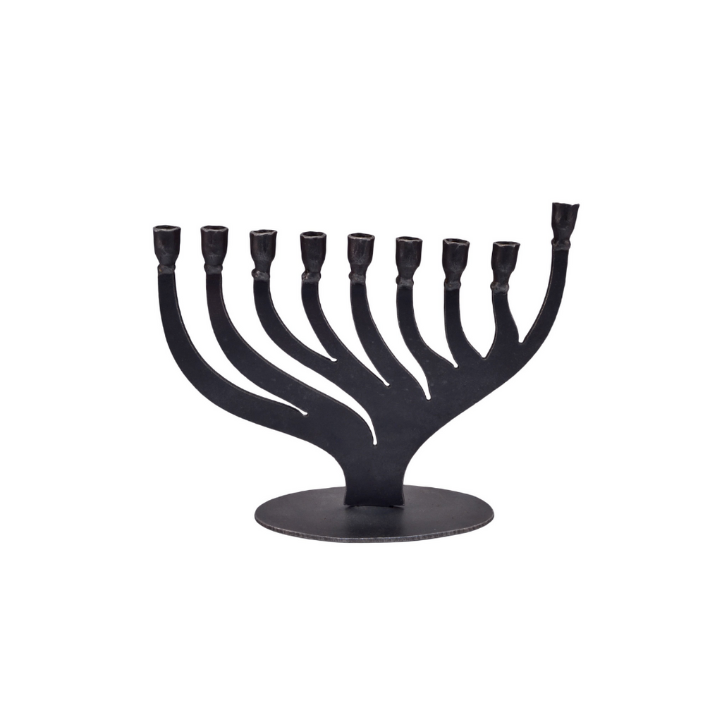 This hand-forged menorah by Blackthorne Forge is the perfect ceremonial art. Combining traditional ironwork with contemporary design, the menorah is a beautiful candelabra for the Jewish holiday of Hanukkah. Made of iron (natural oiled-metal finish). Measures 8.5 x 7 inches. Handcrafted in US.