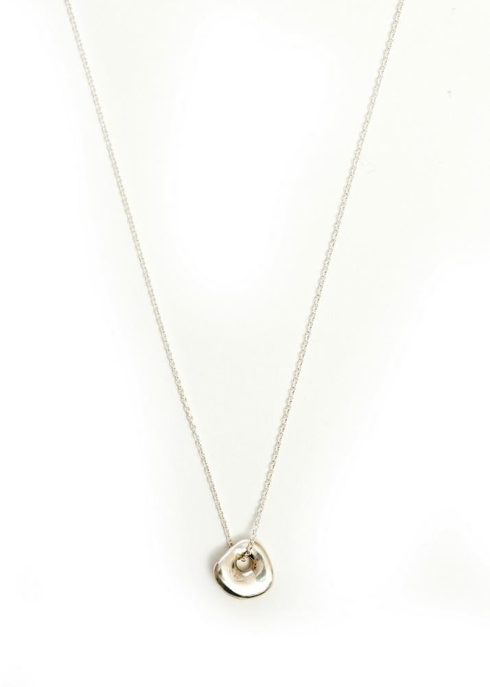 Cast from hole stones found on the beaches of Gimli, Manitoba, Canada, Johanna Brierley's jewelry embraces the organic beauty created by nature. Hole stones are believed to channel good luck, and thus the artist creates simple, long-lasting pieces that symbolize luck and fortune. A great piece for everyday wear, the tri luck necklace measures 17 inches. The sterling silver charm measures 0.5 by 0.38 inches. Handcrafted in Canada.